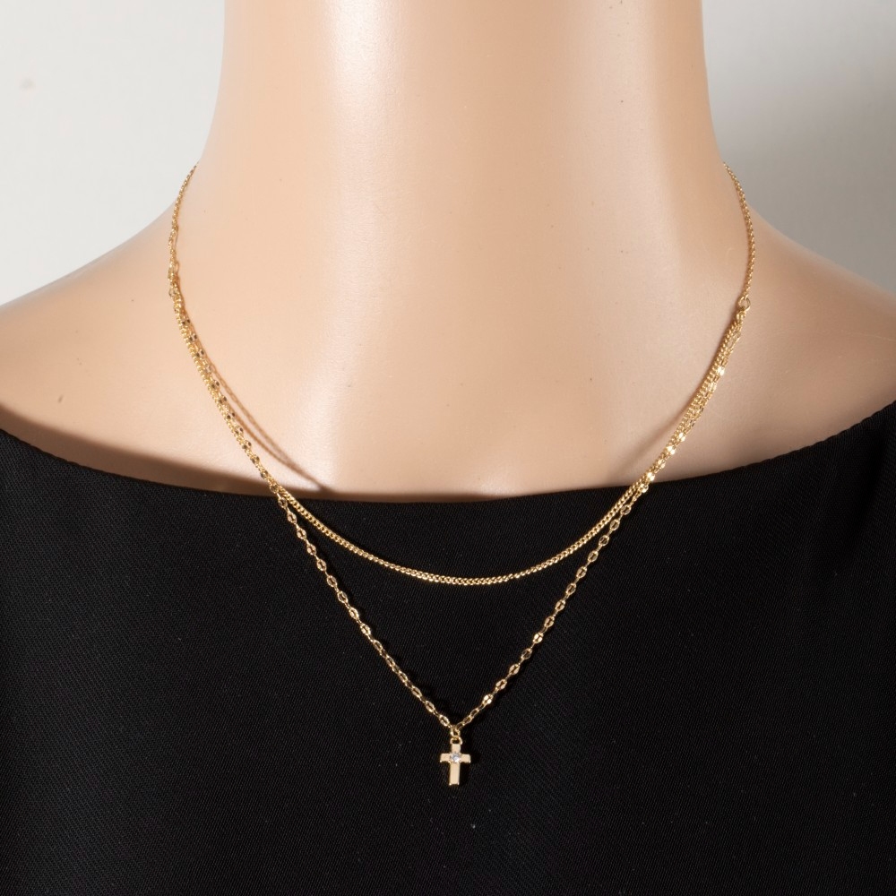 Double Layered Chain Cross Pendant Necklace