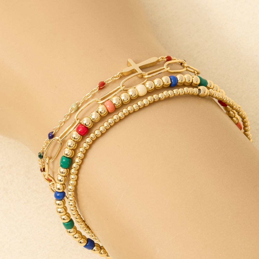 Mini Cross Charms And Metallic Beads Bracelet Set