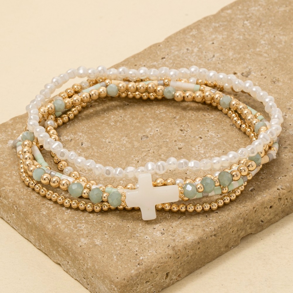 • The perfect way to showcase your unique style, this bracelet adds a distinctive sea shell cross charm mixed mini beaded set design. Master the art of accessorizing with this versatile bracelet, a key element for achieving a chic and polished look. Available in BRW, MINT, MUL, NAT. This item is sold in packs of 1.