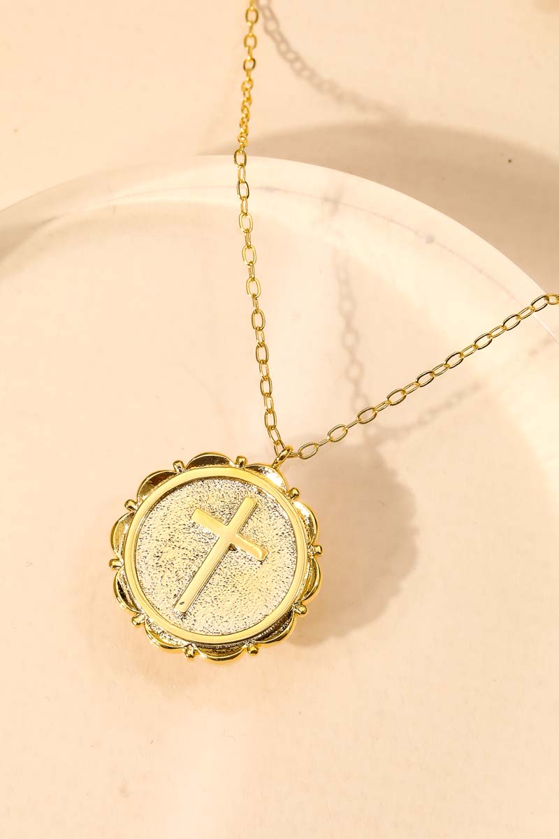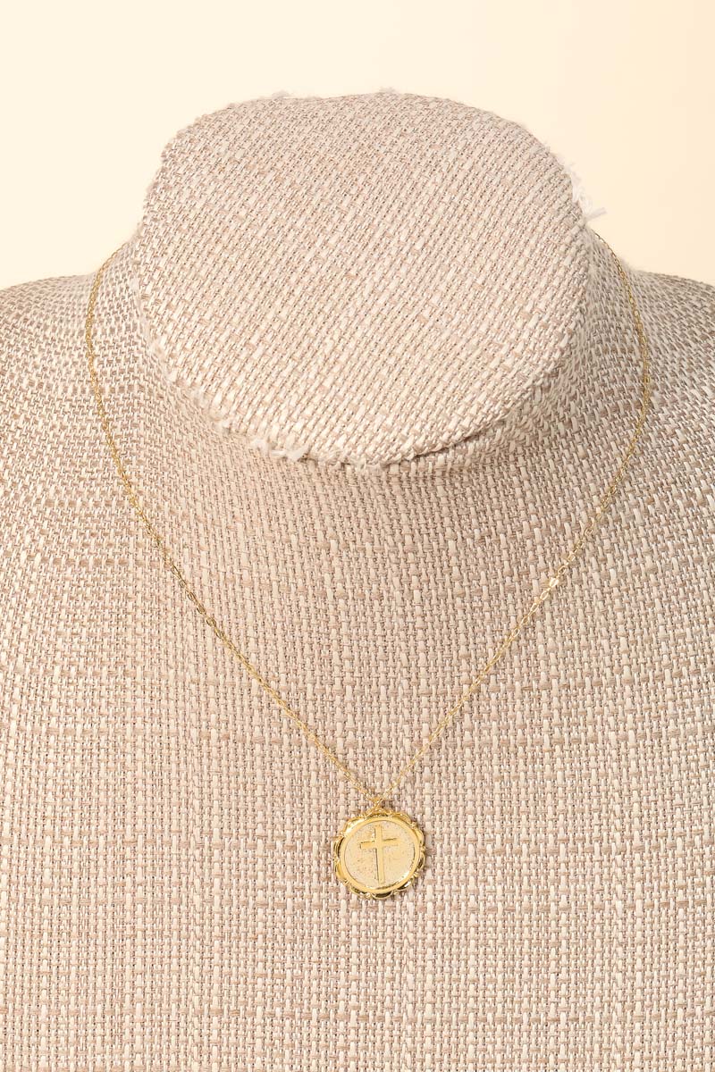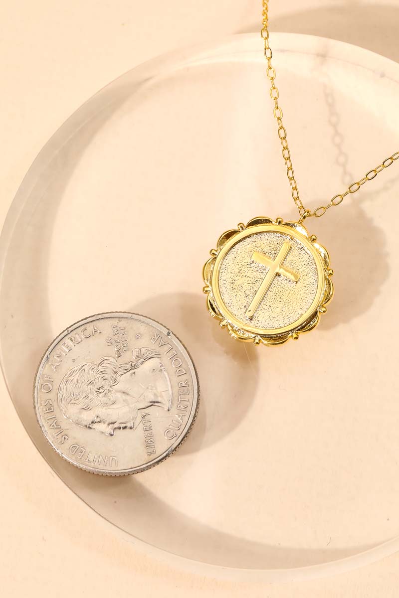 Elegant, classy, chic and absolutely stunning must have necklace that features a beautiful circle cross coin pendant necklace design. A stunning must have for the Spring season! Available in NG. Columbus Jewelry