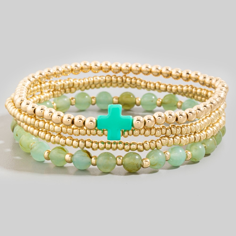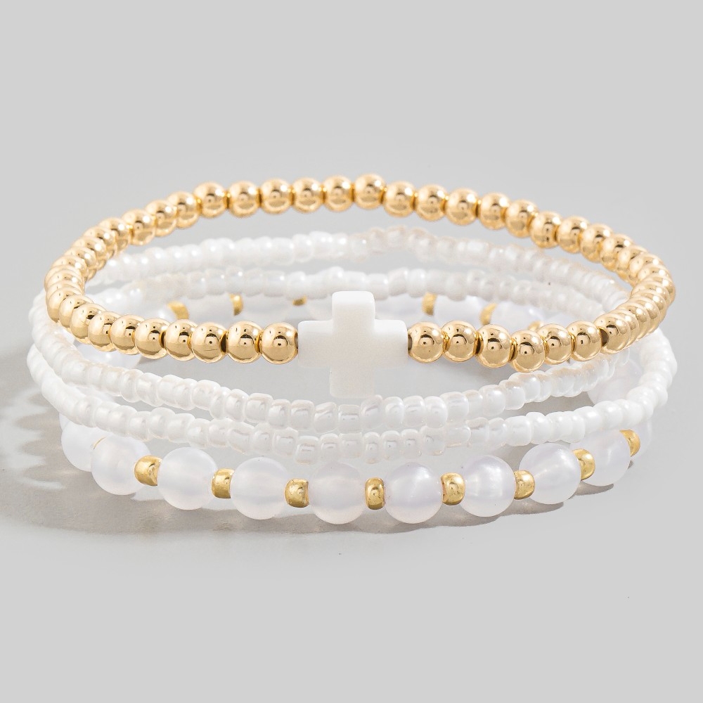 Cross Charm Mixed Beaded Bracelet Set