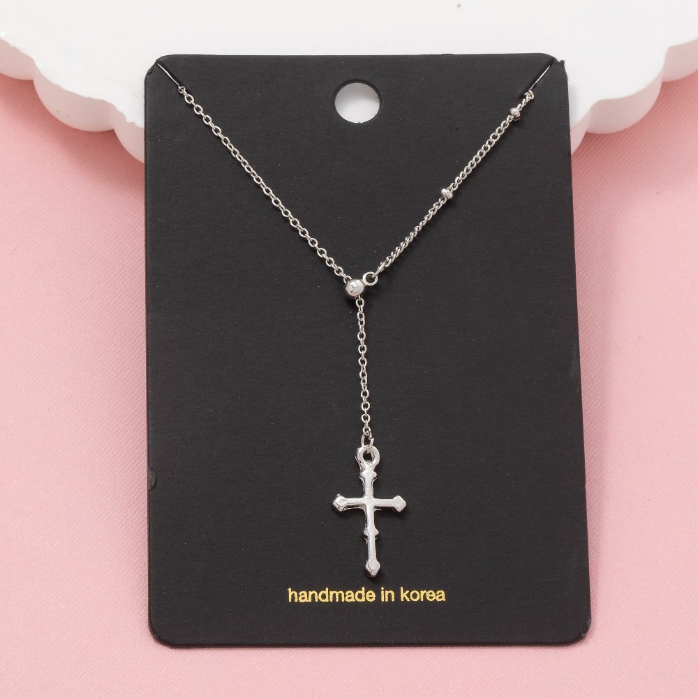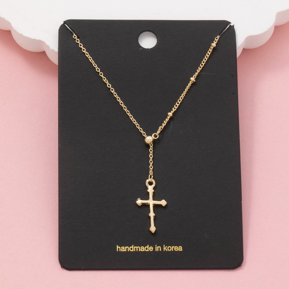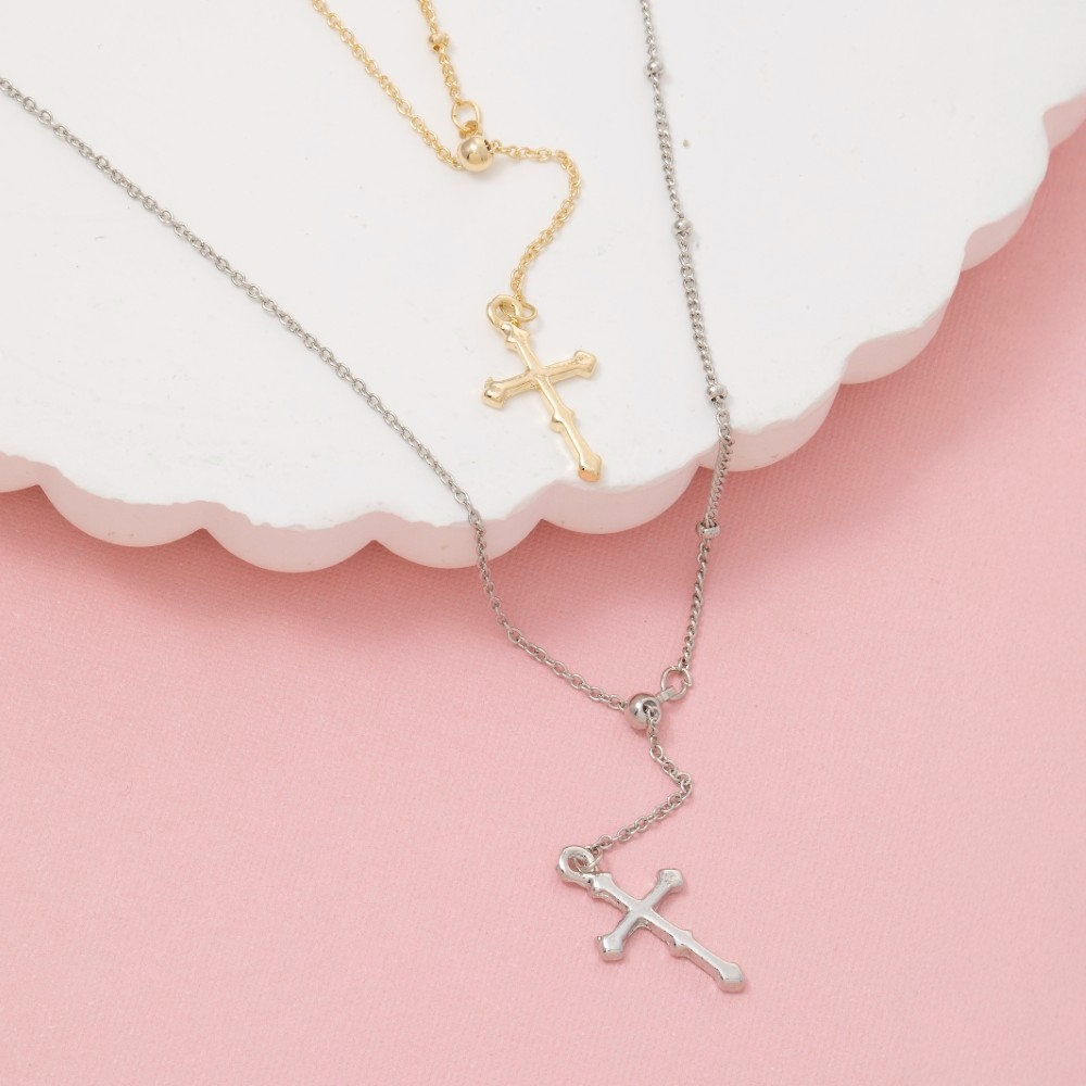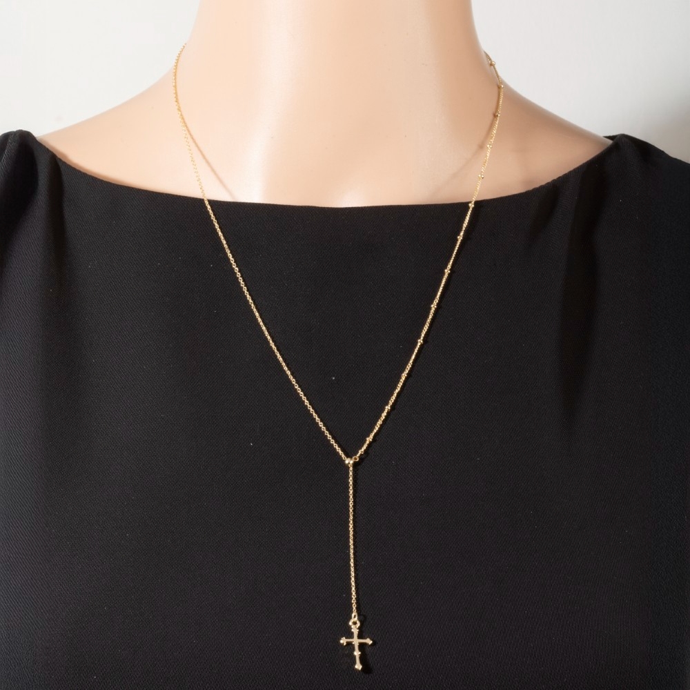 - A true work of art, this chain necklace presents a striking cross pendant lariat design. Unlock endless styling possibilities with this versatile chain necklace, creating a signature look that speaks volumes. Available in G, S. This item is sold in packs of 1.