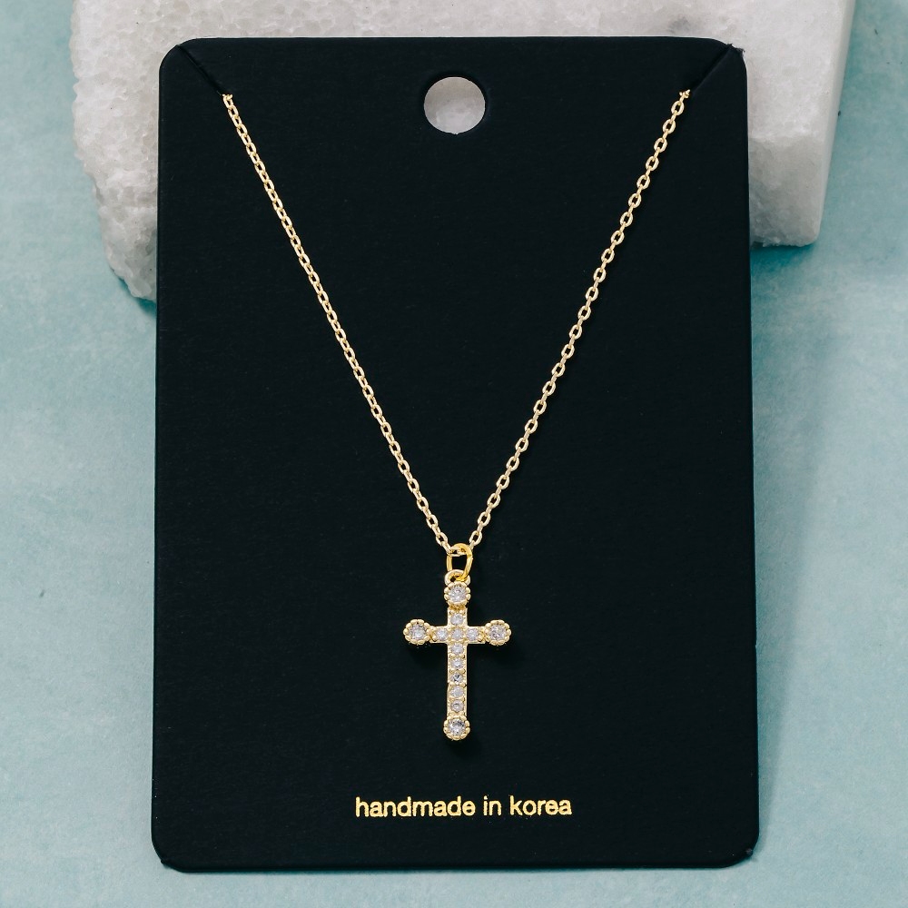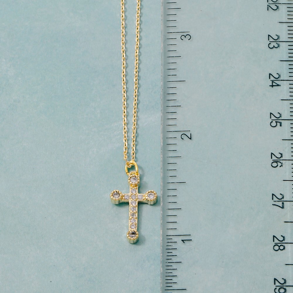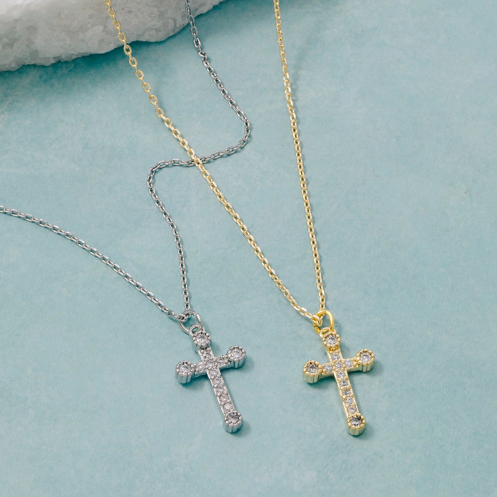 • A stunning addition to any jewelry collection, this pendant necklace boasts a magnificent cz pave cross design. Elevate your style effortlessly with this versatile pendant necklace, enhancing the appeal of any ensemble. Available in G, S. This item is sold in packs of 1.