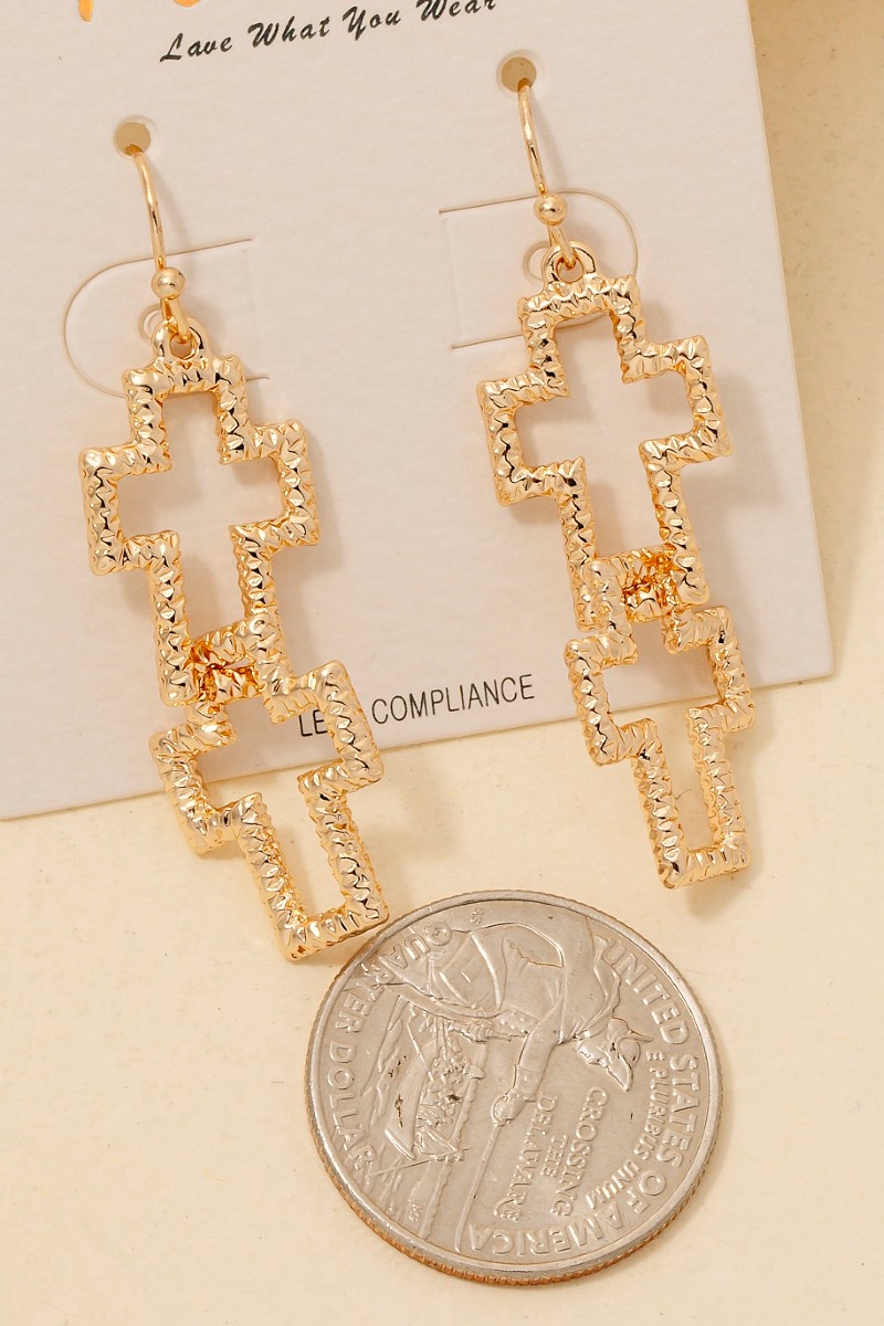 Vintage Metallic Cross Dangle Earrings