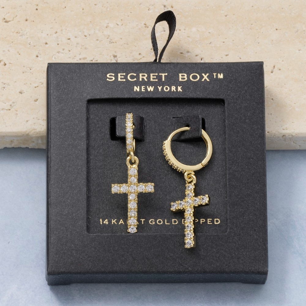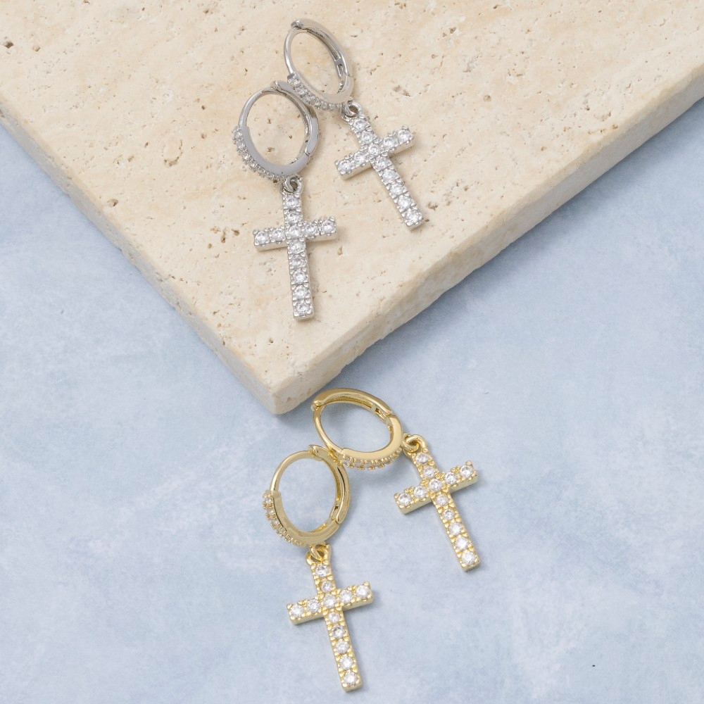 • A timeless piece that will never go out of style, this pair of drop earrings introduces an exceptional secret box gold dipped cubic zirconia pave cross design. Elevate your fashion statement with this versatile pair of drop earrings, adding a touch of glamour to your everyday look. Available in GD, WG. This item is sold in packs of 1.