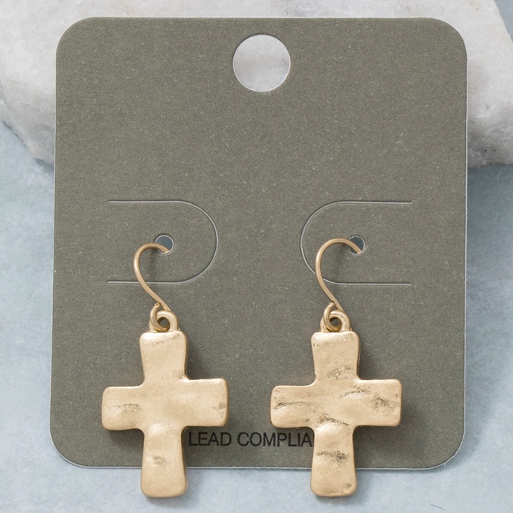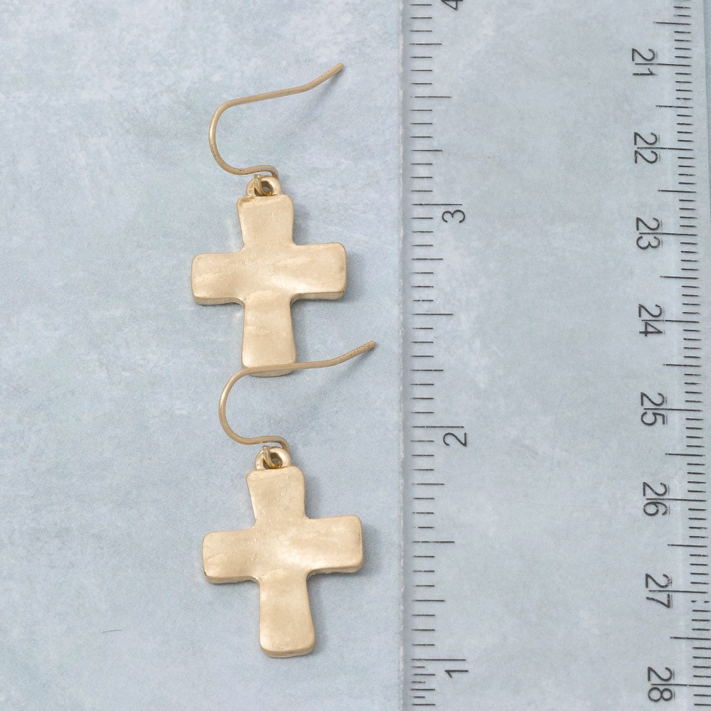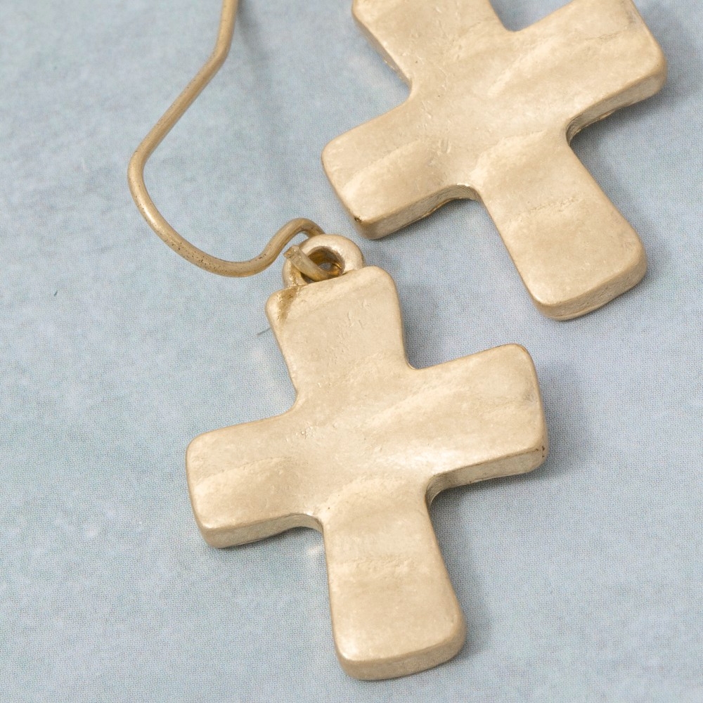 • Bold and daring, this pair of dangle earrings emanates an elegant vintage metallic cross design. Add a touch of glamour to your wardrobe with this versatile pair of dangle earrings, perfect for enhancing the elegance of any look. Available in WG. This item is sold in packs of 1.