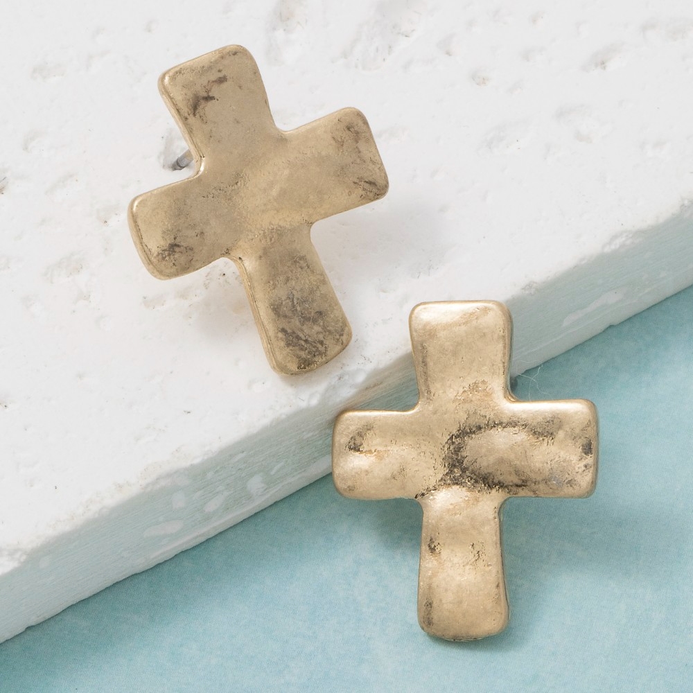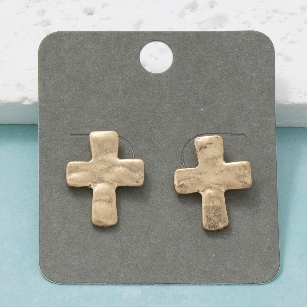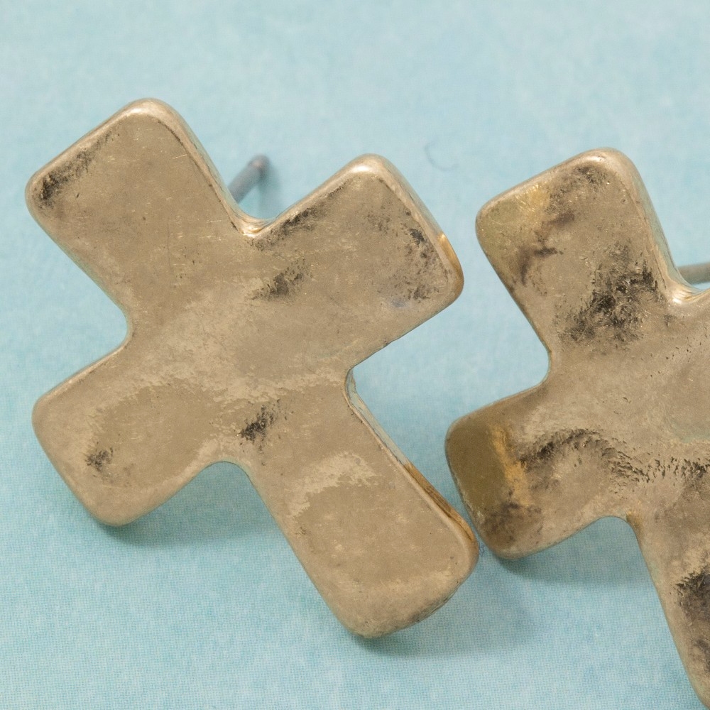 - This piece is designed to be both stylish and functional, this pair of stud earrings shows off a distinctive vintage metallic cross design. Infuse a hint of luxury into your daily attire with this versatile pair of stud earrings, a must-have for those who appreciate timeless elegance. Available in WG. This item is sold in packs of 1.