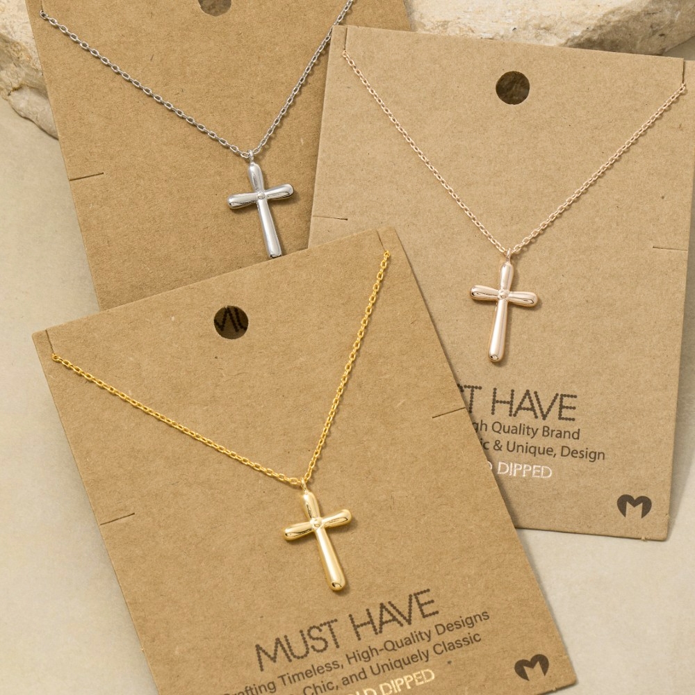 • Make a bold statement, this pendant necklace boasts a magnificent gold dipped cross design. Elevate your everyday style with this versatile pendant necklace, a simple yet impactful addition to your fashion repertoire. Available in G, R, S. This item is sold in packs of 1.