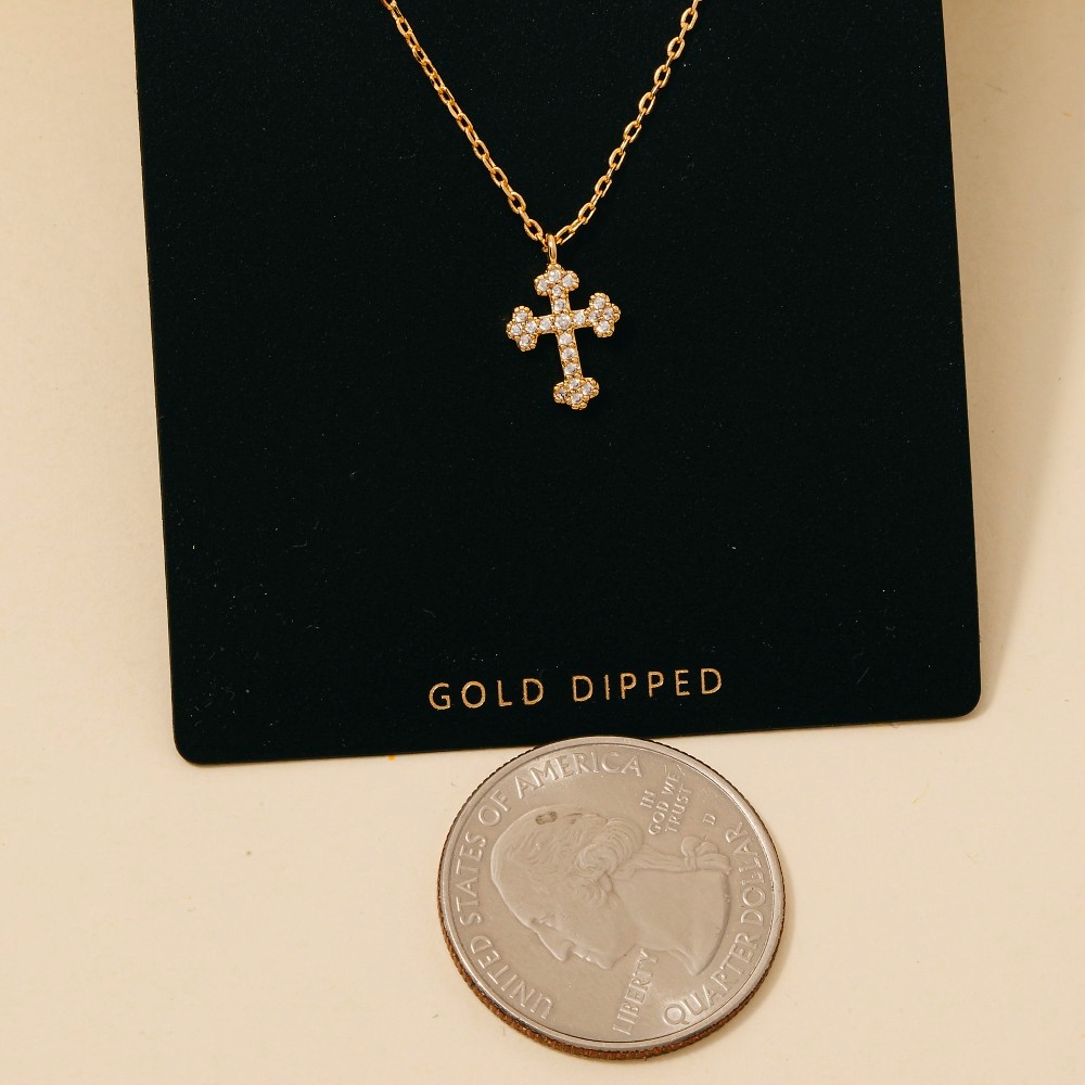 Gold Dipped Cz Pave Cross Pendant Necklace