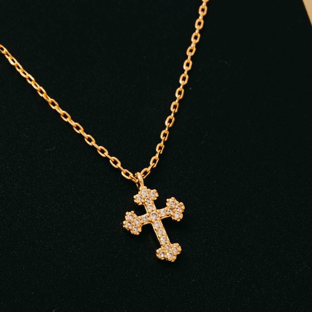 Cz Studded Cross Pendant Necklace