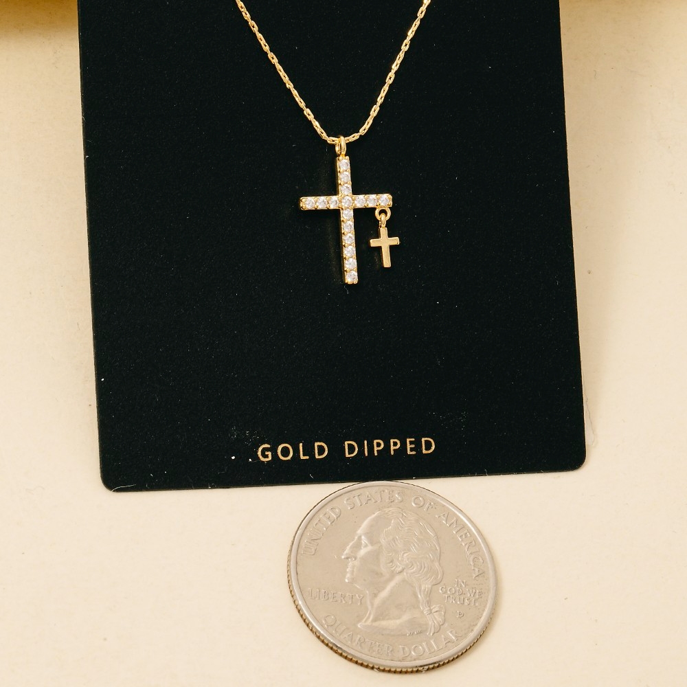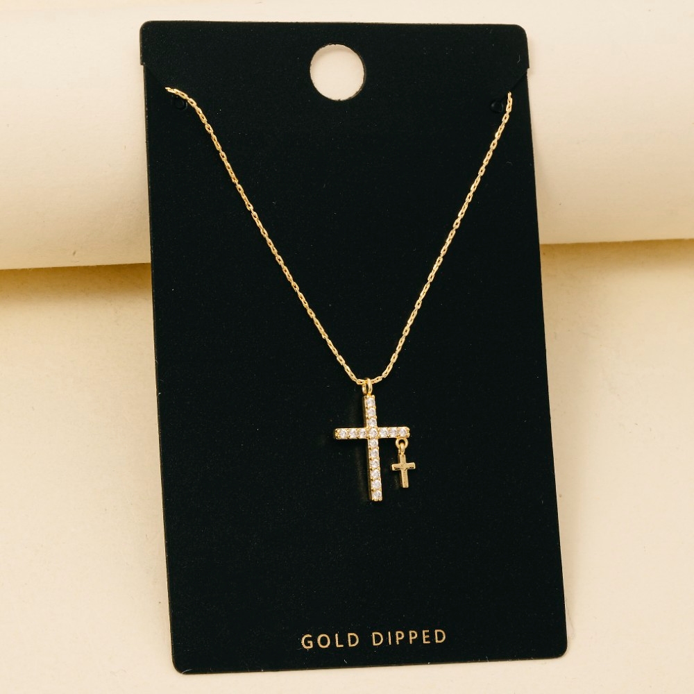 - Upgrade your necklace game, this columbus jewelry necklace evokes a captivating gold dipped cubic zirconia pave and mini cross pendant design. Transform your outfit into a fashion masterpiece with this versatile necklace, an essential for the style-conscious individual. This item is sold in packs of 1.