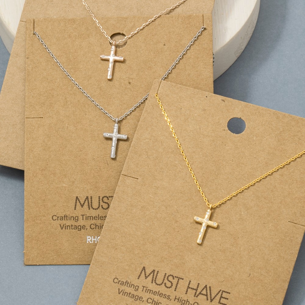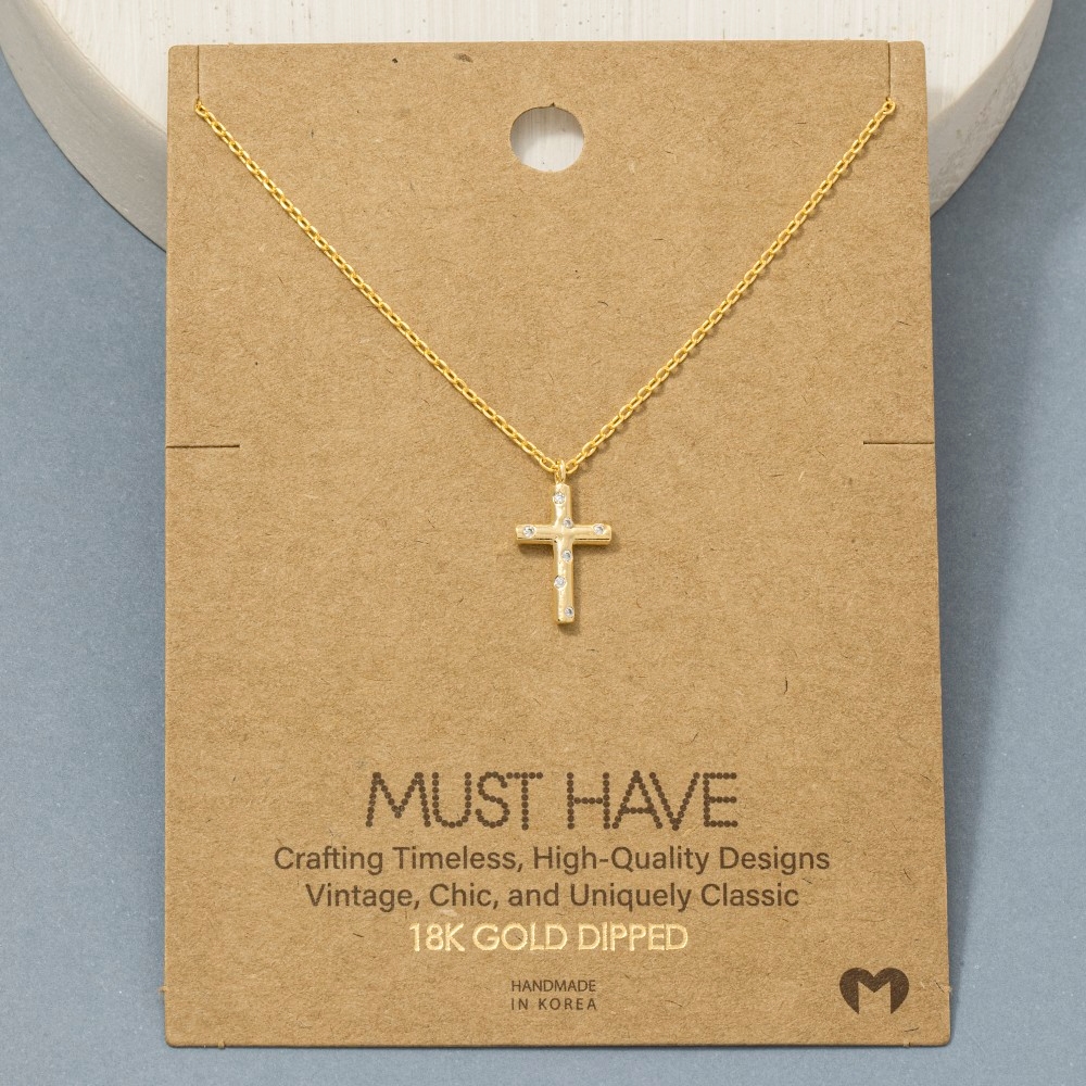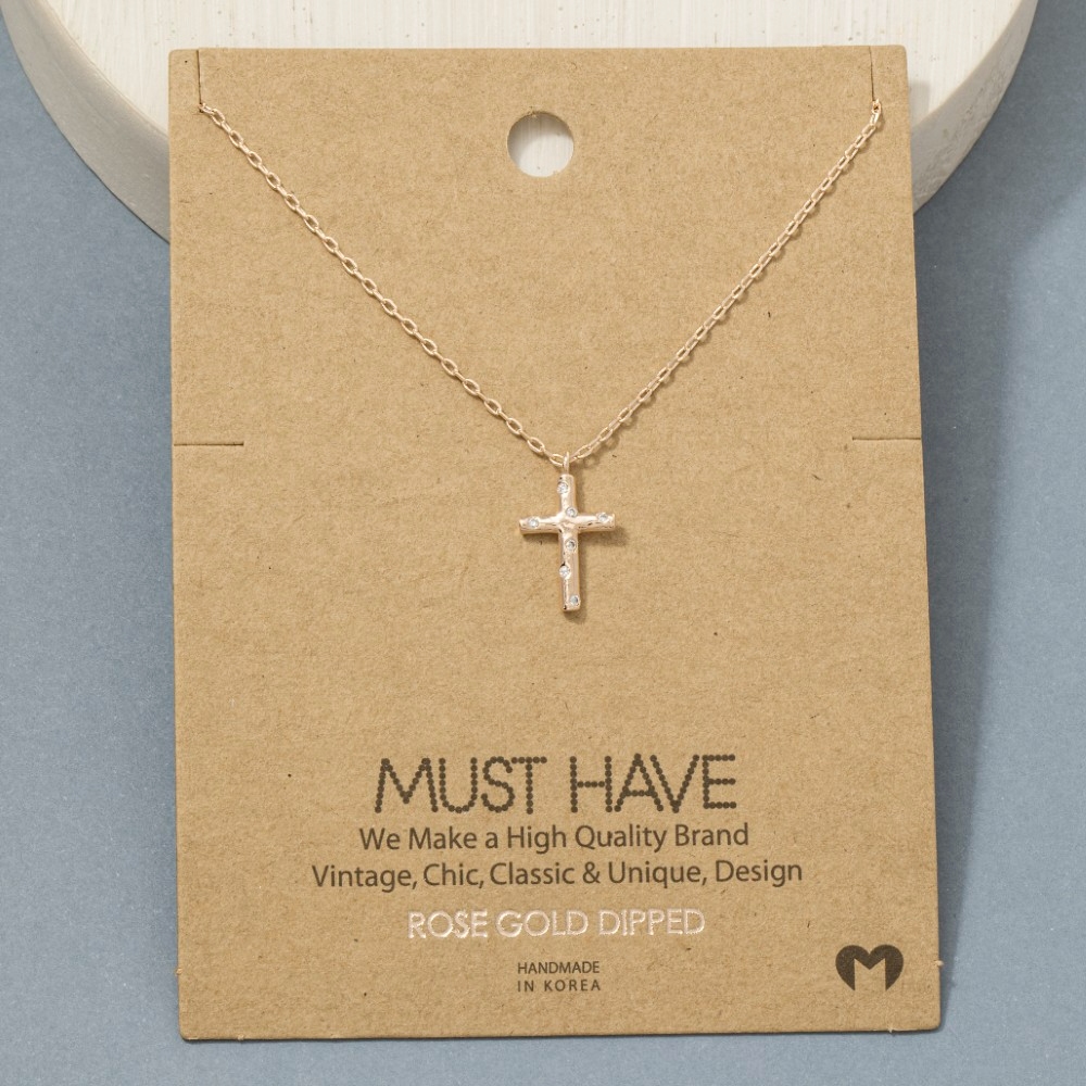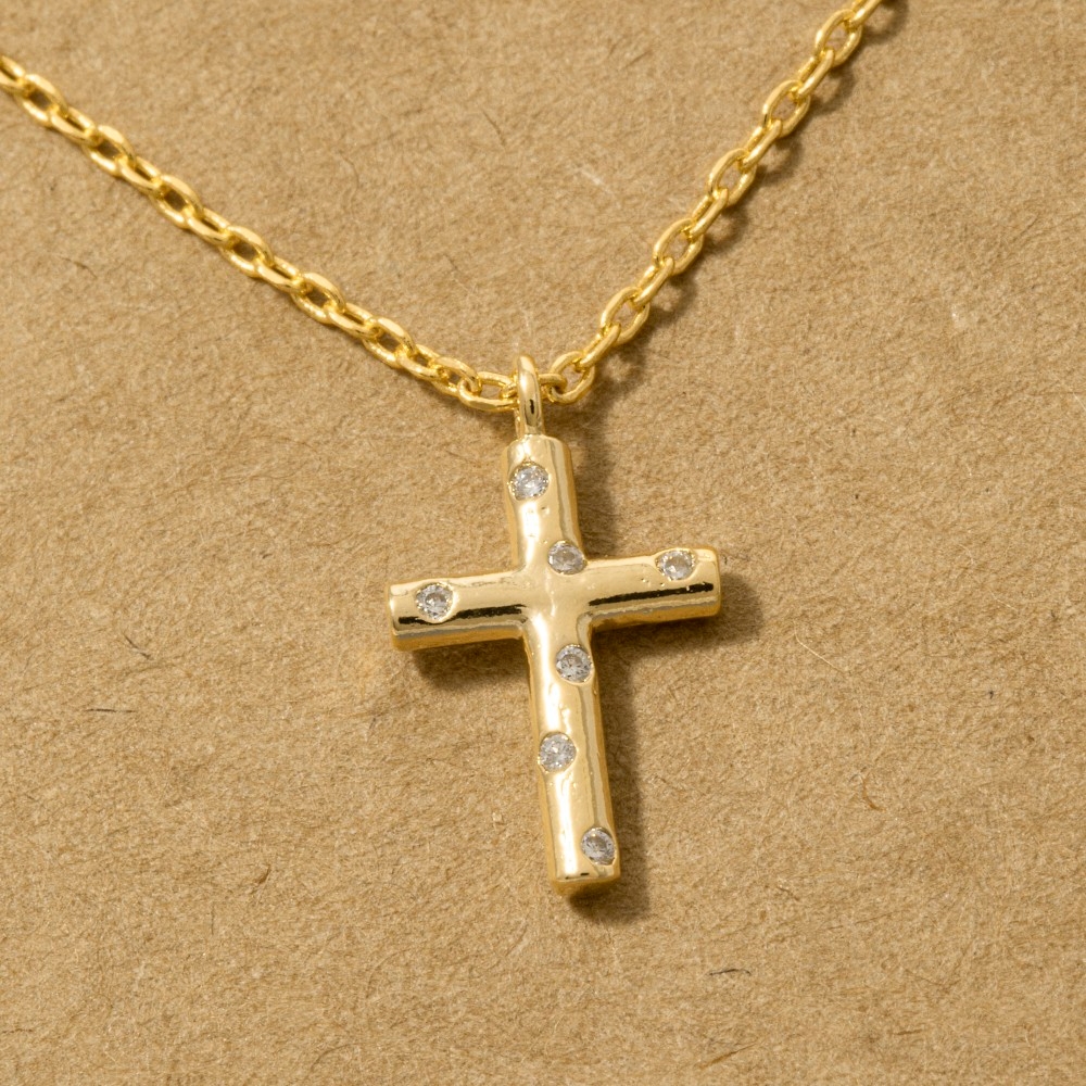 • Perfect for any occasion, from casual to formal, this pendant necklace incorporates a remarkable gold dipped cubic zirconia studded cross design. Infuse a hint of luxury into your daily attire with this versatile pendant necklace, a must-have for those who appreciate timeless elegance. Available in G, R, S. This item is sold in packs of 1.