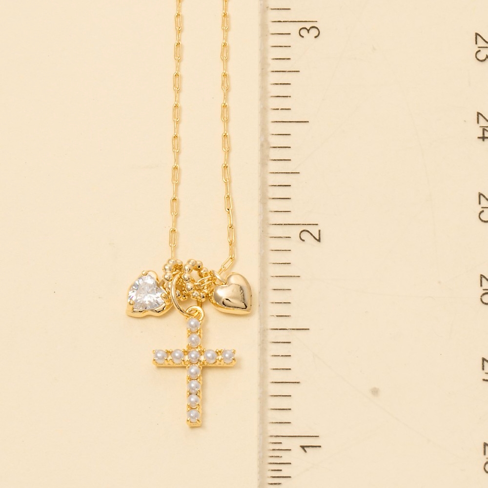 • Perfectly polished and endlessly versatile, this chain necklace carries a charming heart and cross charms design. Perfect for adding some personality and flair to your wardrobe, this chain necklace is a must-have. Available in GDCRM. This item is sold in packs of 1.