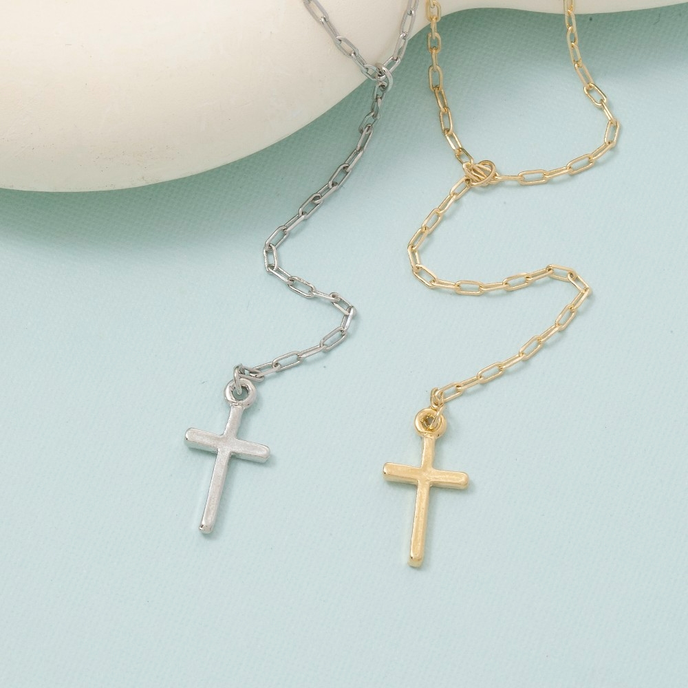 - Stay ahead of the fashion curve, this chain necklace emanates an elegant metallic cross pendant y design. This item adds the perfect finishing touch to any outfit, making it stand out from the crowd. Available in G, S. This item is sold in packs of 1.