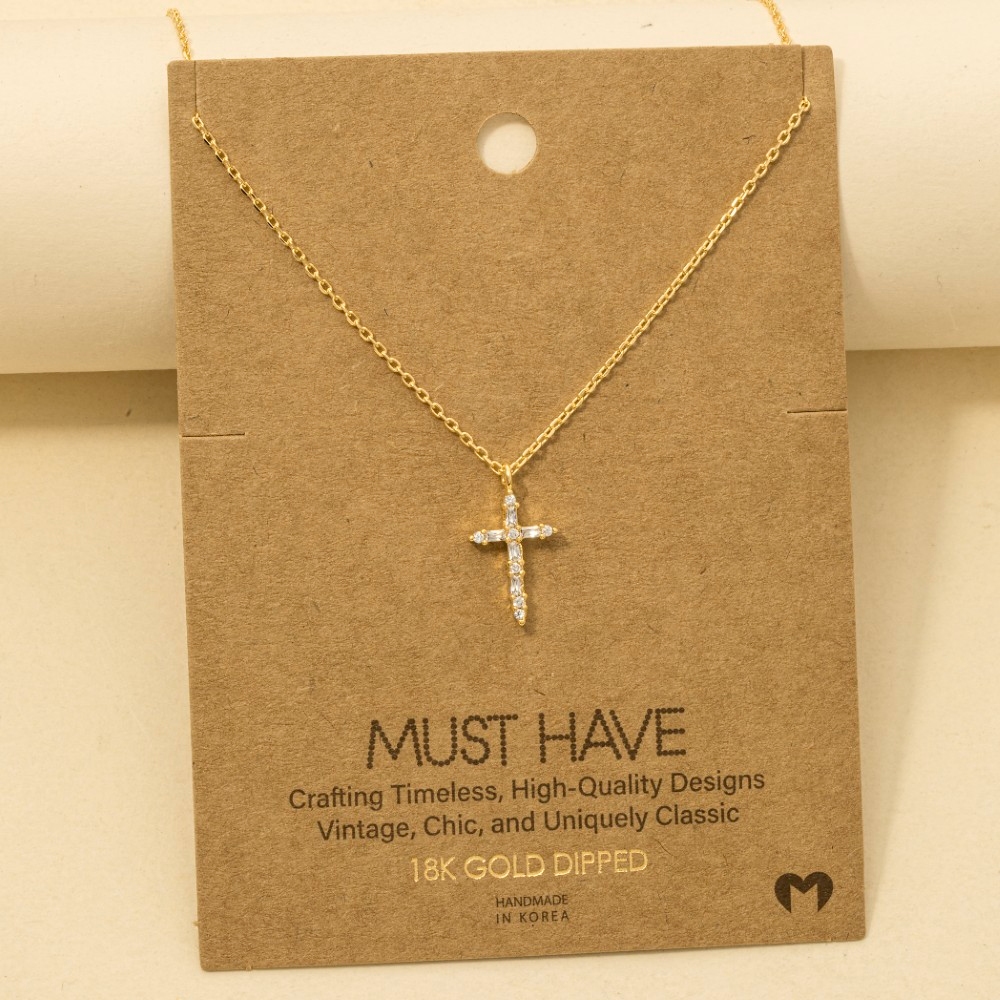 • Perfect for any fashion-forward individual, this pendant necklace exudes a refined gold dipped cubic zirconia baguette cross design. Achieve a perfect blend of style and sophistication with this versatile pendant necklace, a fashion-forward choice for any occasion. Available in G, R, S. This item is sold in packs of 12.