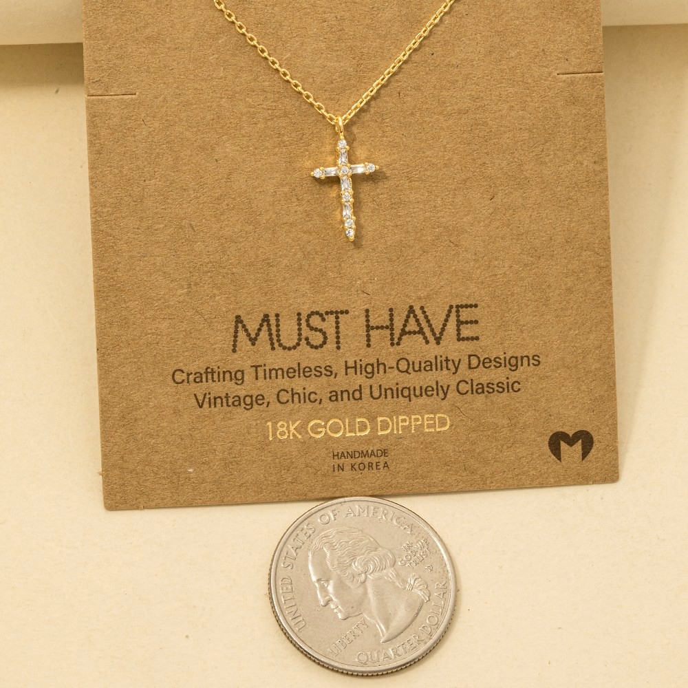 Gold Dipped Cz Studded Cross Pendant Necklace