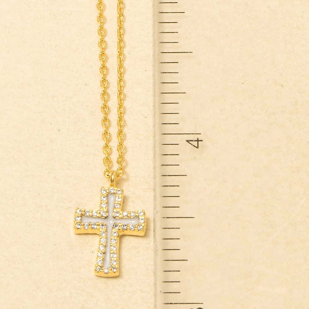• Sleek, modern, and always stylish, this trending necklace comes with a special gold dipped enamel cross pendant necklace design. Perfect for adding a touch of glamour and sophistication to any outfit, this trending necklace is a must-have. Available in BK, WH. This item is sold in packs of 1.