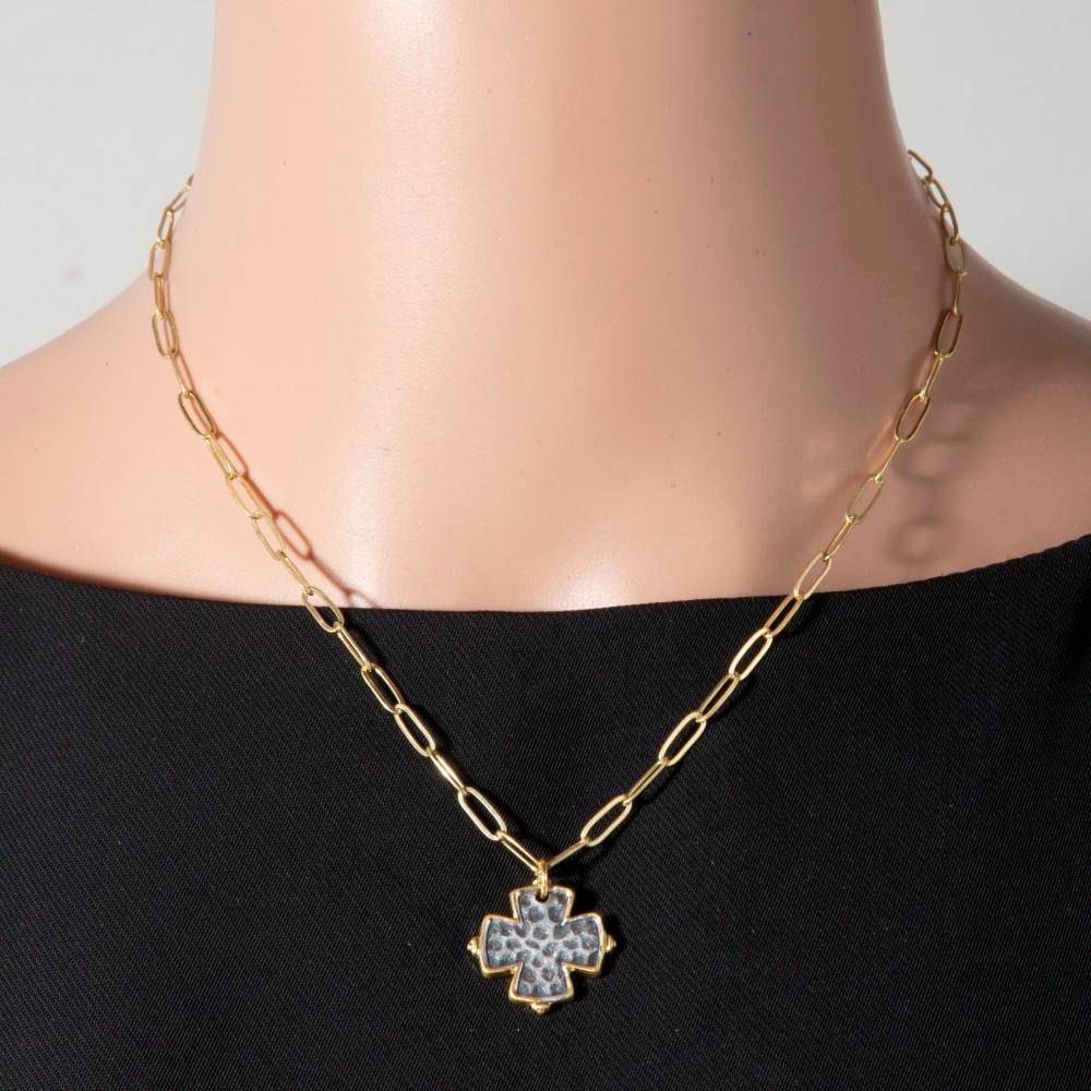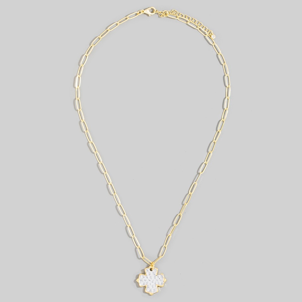 Effortlessly stylish and always on-trend, this necklace encompasses a grand gold dipped hammered two tone clover pendant design. Elevate your personal style effortlessly with this versatile necklace, an essential component for a refined wardrobe. Available in NO COLOR. This item is sold in packs of 1.