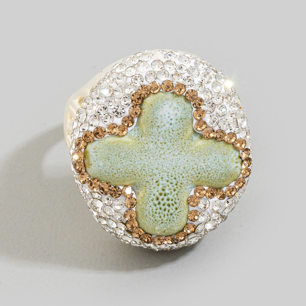 - This is the perfect ring for any occasion ring reveals an intricate pave stone cross statement design. Elevate your fashion statement with this versatile ring, adding a touch of glamour to your everyday look. This item is sold in packs of 1.