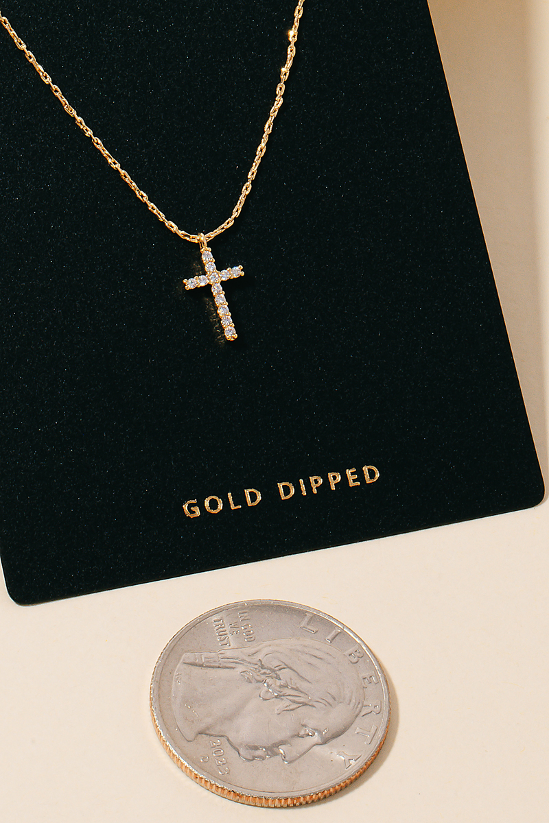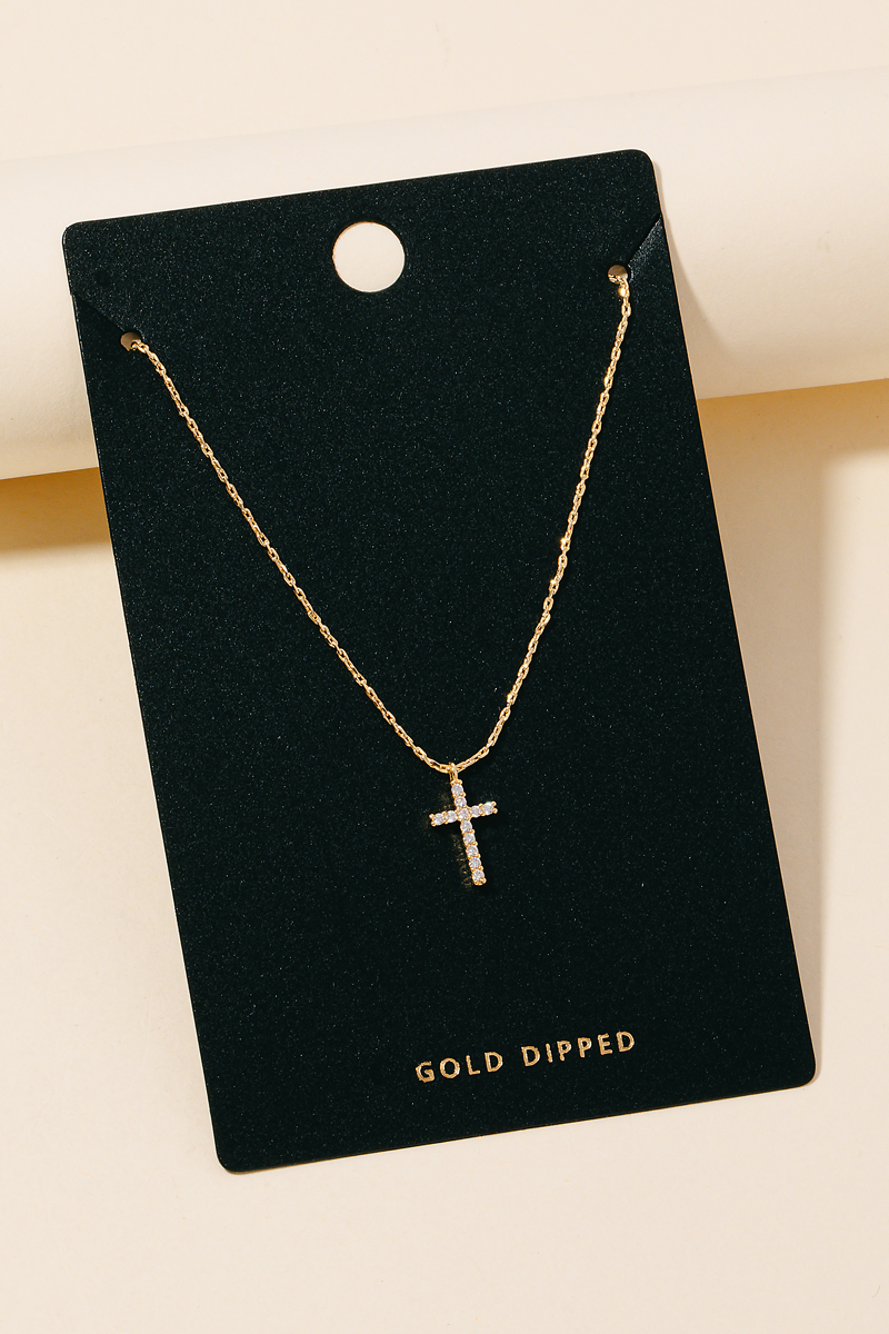 A unique and stylish piece that sets you apart, this columbus jewelry necklace incorporates a flawless rhinestone cross pendant design. A chic and sophisticated necklace that's perfect for dressing up or down. Available in G and S. This item is sold in packs of 1.