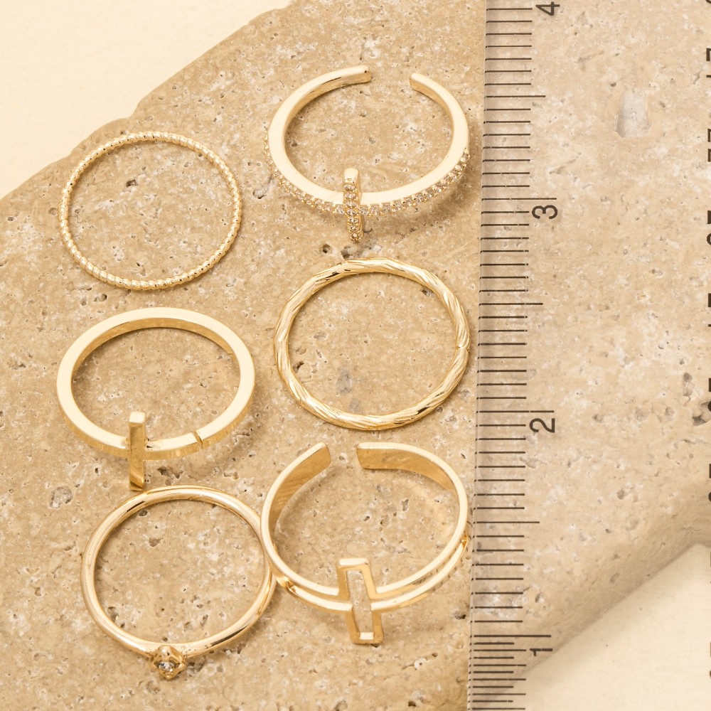 • Stay ahead of the fashion curve, this ring set incorporates a flawless six piece assorted cross rings set design. Infuse a hint of luxury into your daily attire with this versatile ring set, a must-have for those who appreciate timeless elegance. Available in GCL. This item is sold in packs of 1.