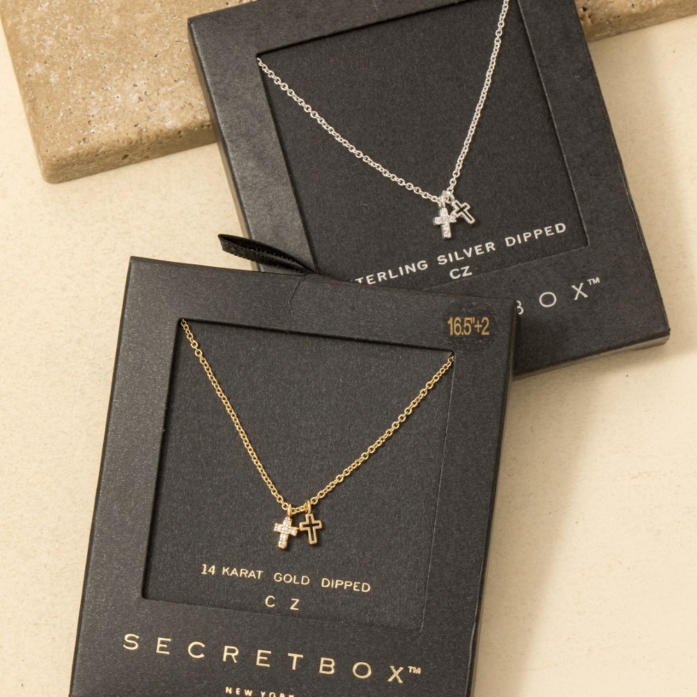 Secret Box Gold Dipped Cz Mini Cross Pendant Necklace
