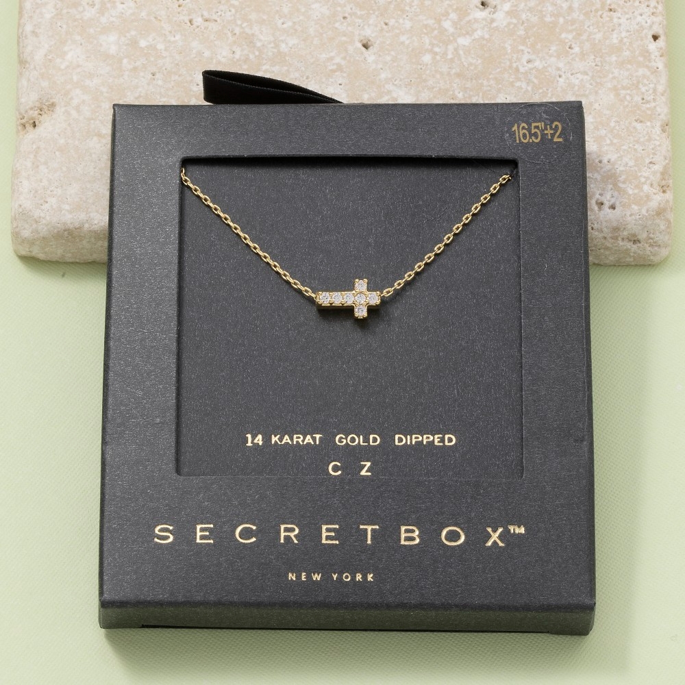 • Stay on-trend and stand out from the crowd, this necklace flaunts a luxurious secret box gold dipped cubic zirconia mini cross pendant design. A stylish necklace that's perfect for complementing any outfit you wear. Available in GD. This item is sold in packs of 1.