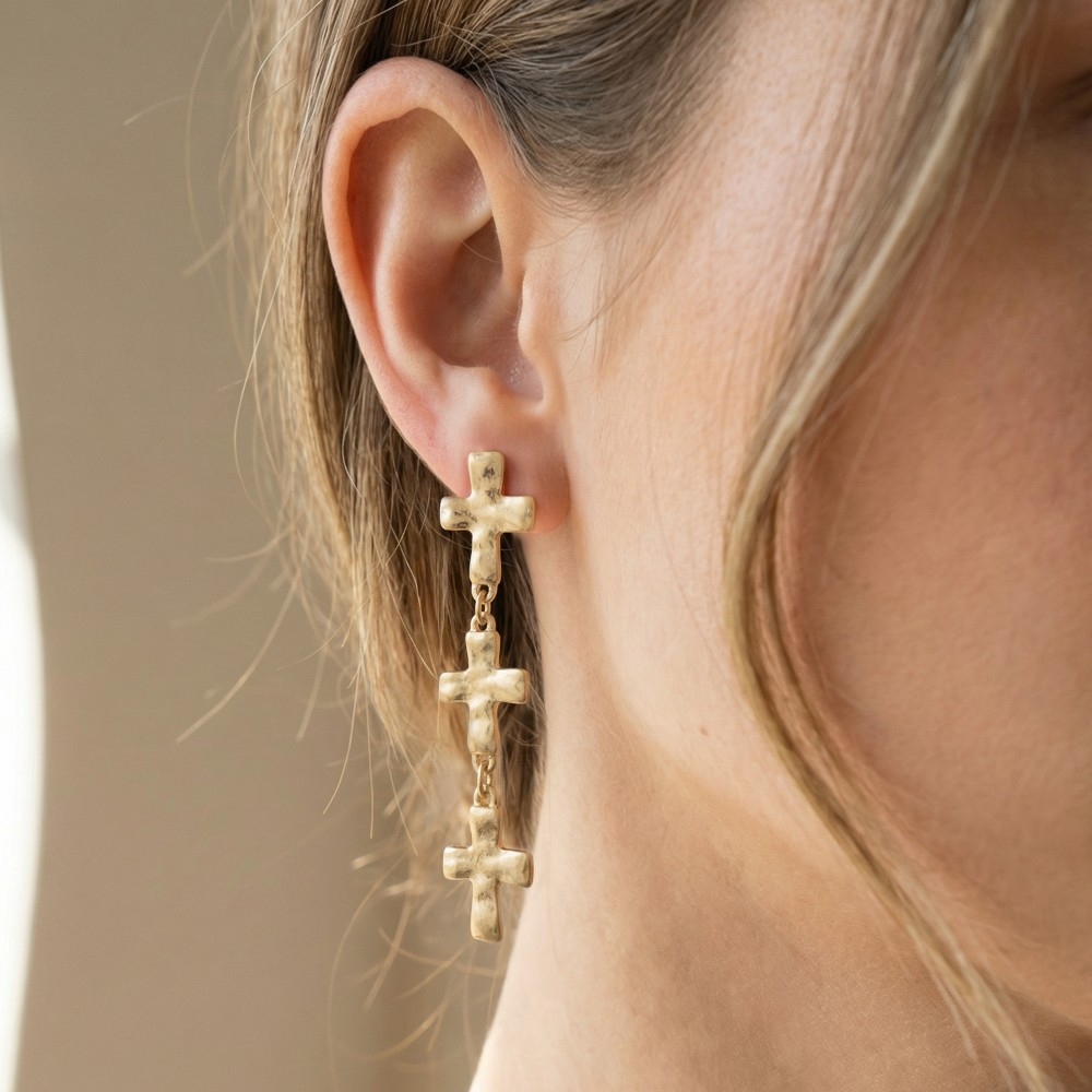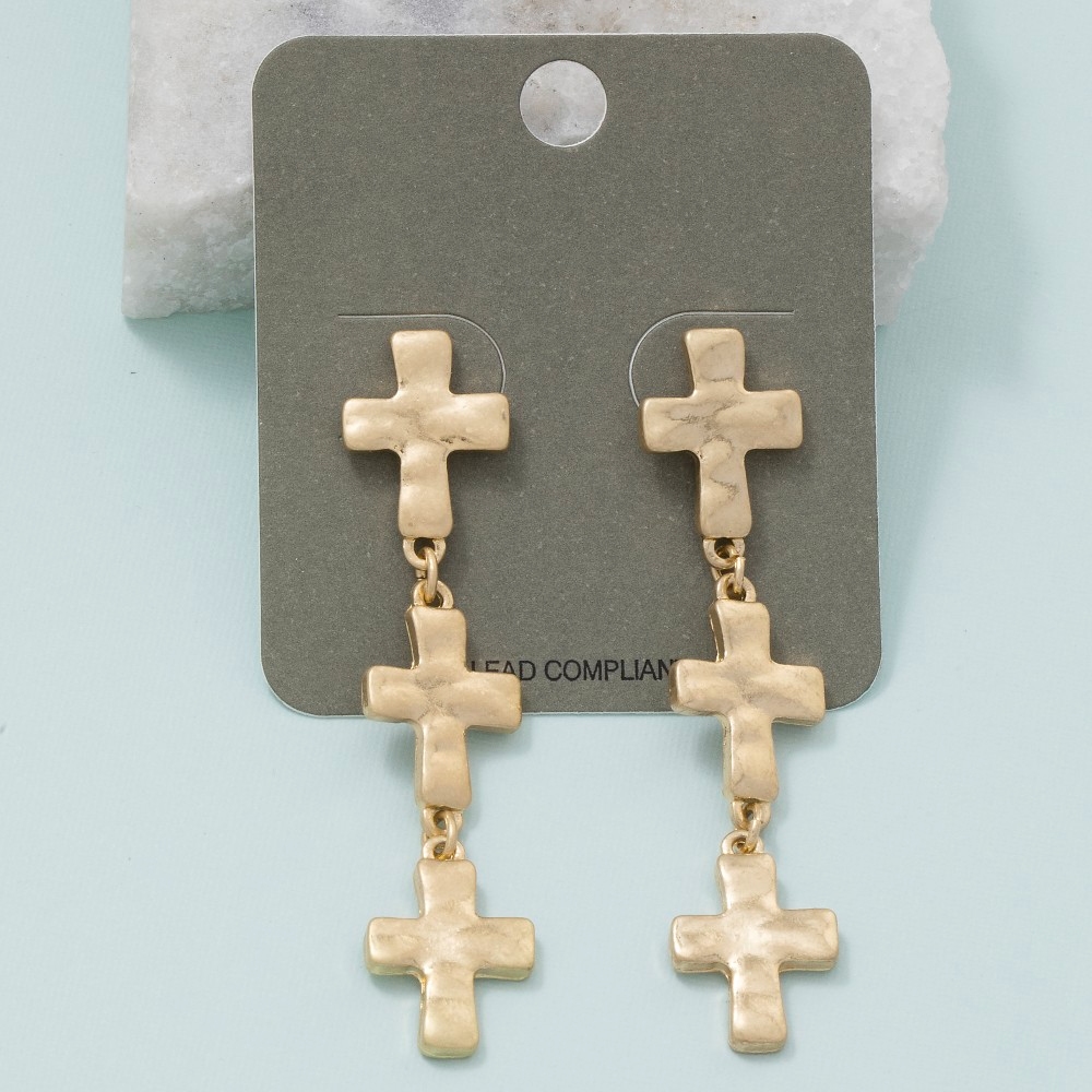 Sleek and modern, this pair of dangle earrings adds a distinctive vintage metallic cross chain design. Infuse a hint of luxury into your daily attire with this versatile pair of dangle earrings, a must-have for those who appreciate timeless elegance. Available in WG. This item is sold in packs of 1.