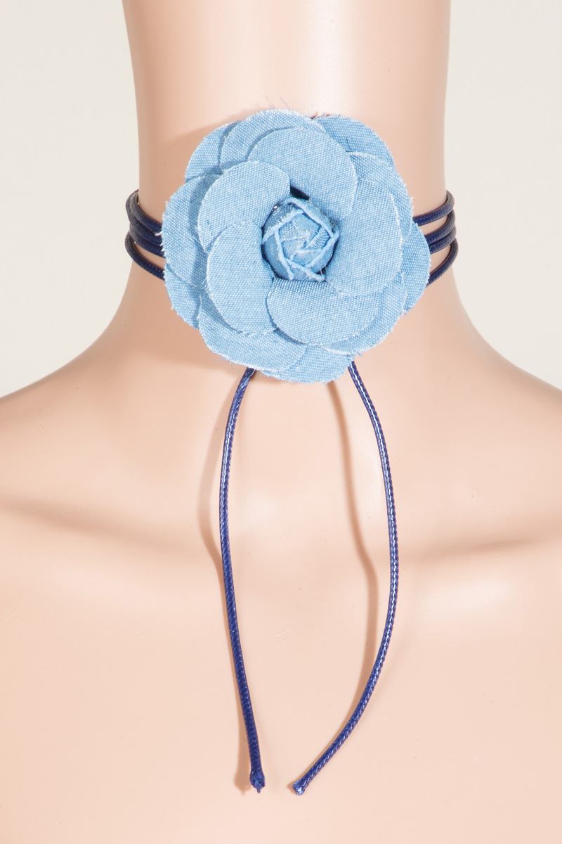 • A stunning piece that is sure to turn heads, this necklace reveals an intricate flower denim choker design. This necklace is an effortless way to add some personality to your outfit. Available in DDN and LDN. This item is sold in packs of 1.
