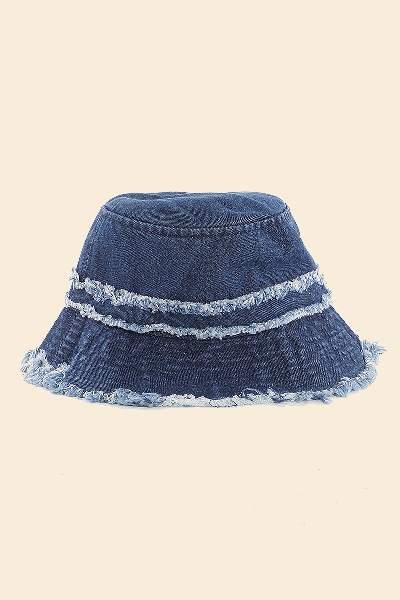 • A contemporary masterpiece, this bucket hat offers a remarkable fringe trim denim design. Elevate your fashion IQ with this versatile accessory, designed to seamlessly integrate into any style profile. Available in DN and LDN. This item is sold in packs of 1.