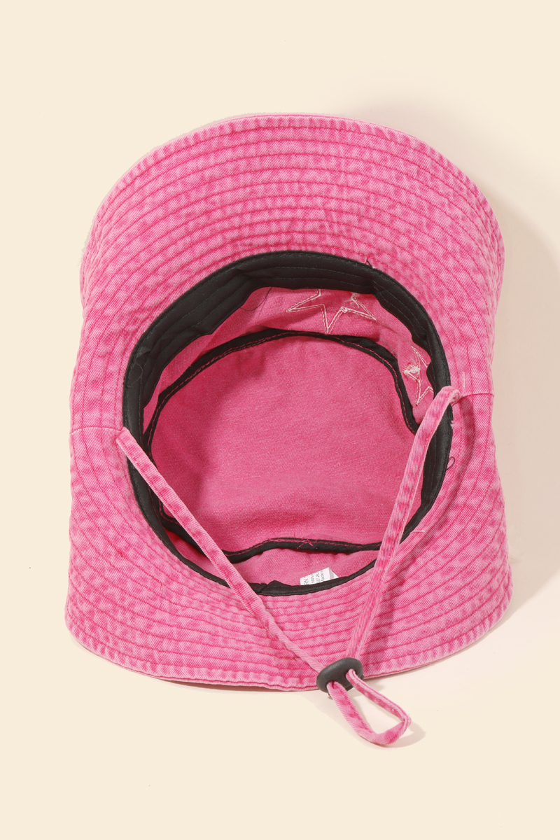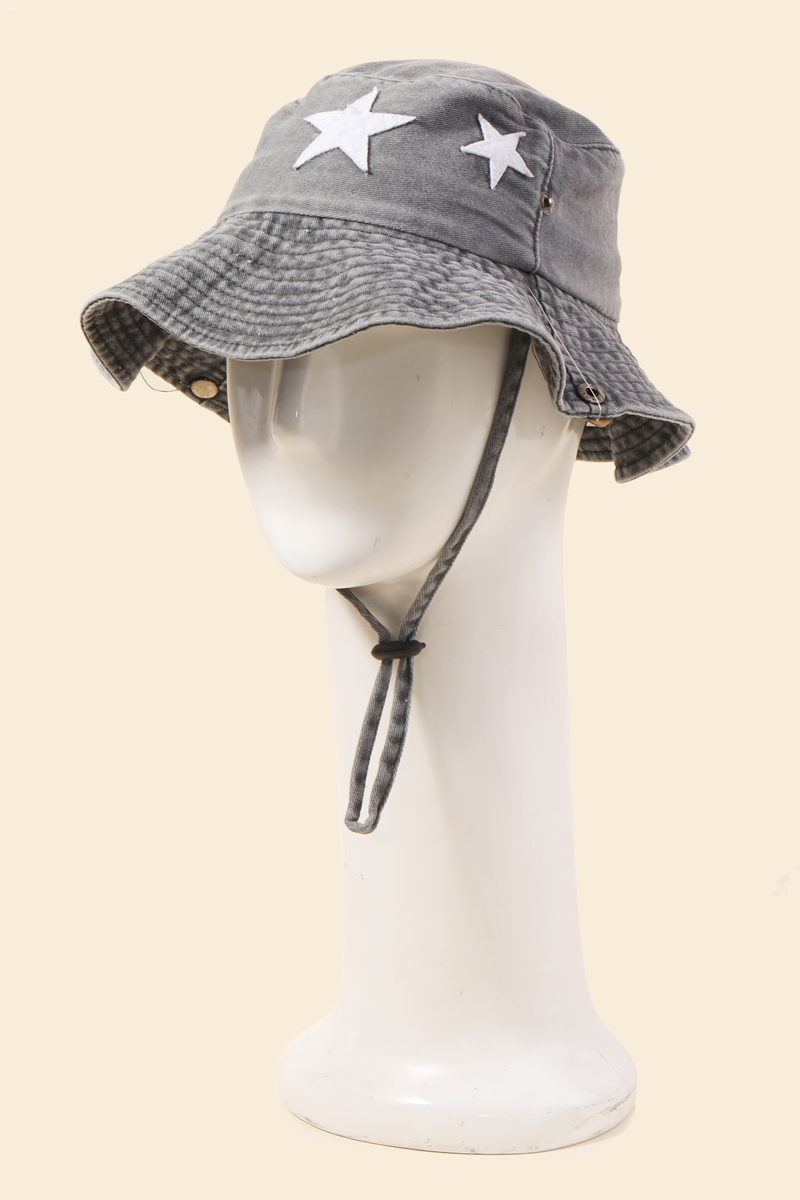 Kids Double Star Denim Chin Strap Bucket Hat