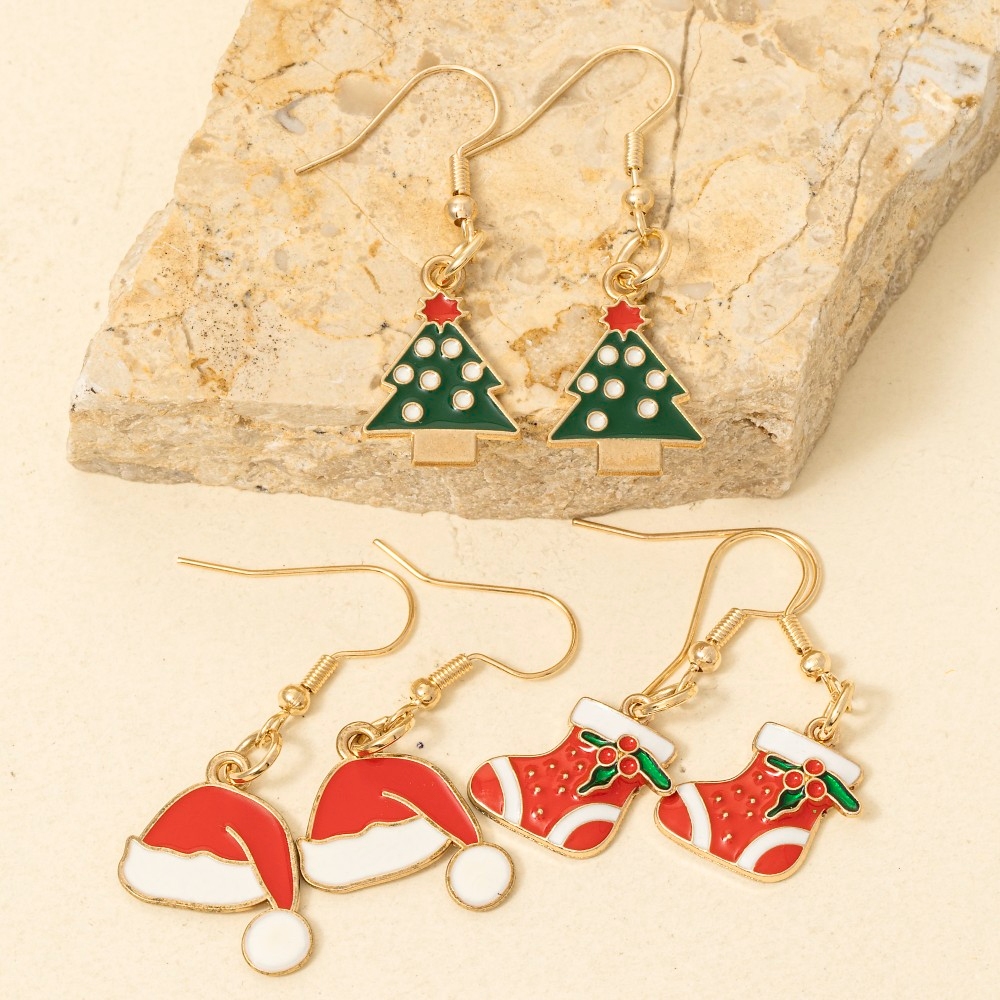 • Effortlessly elevate your style, this pair of dangle earrings boasts a magnificent 3pc christmas enamel set design. The perfect way to complete any outfit, whether you're dressing up or keeping it casual. Available in ASSORTED. This item is sold in packs of 1.
