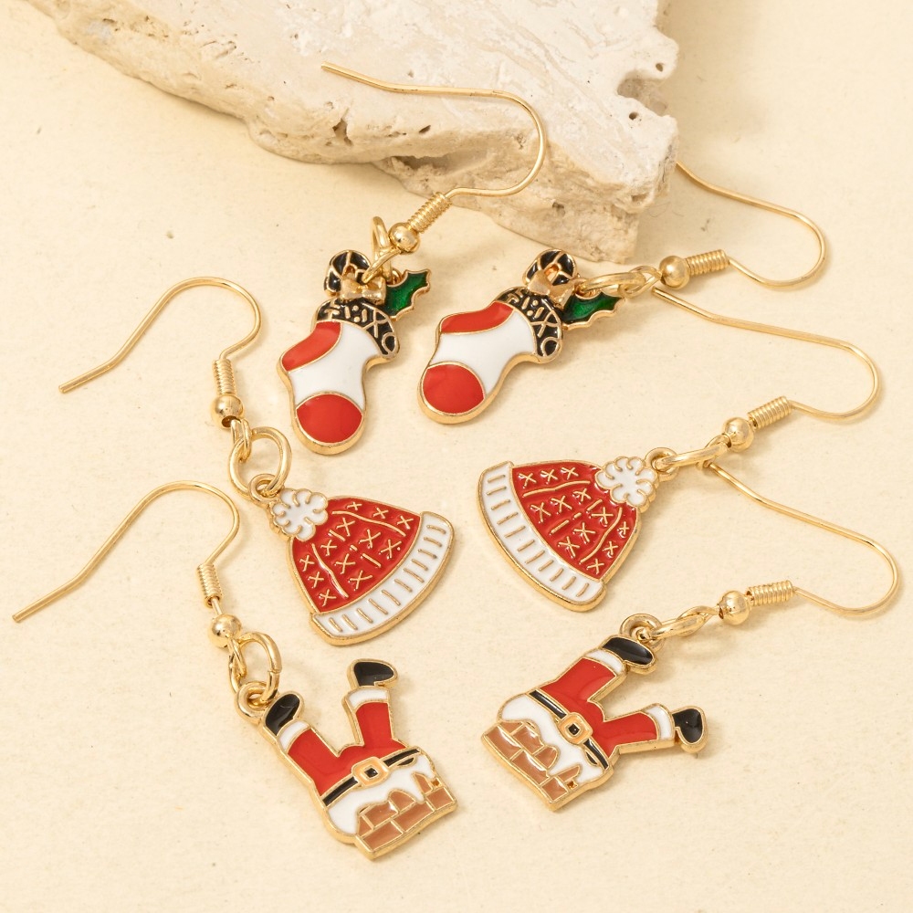 • A true work of art, this pair of dangle earrings highlights a special enamel christmas 3pc set design. Achieve a perfect blend of style and sophistication with this versatile pair of dangle earrings, a fashion-forward choice for any occasion. Available in ASSORTED. This item is sold in packs of 1.