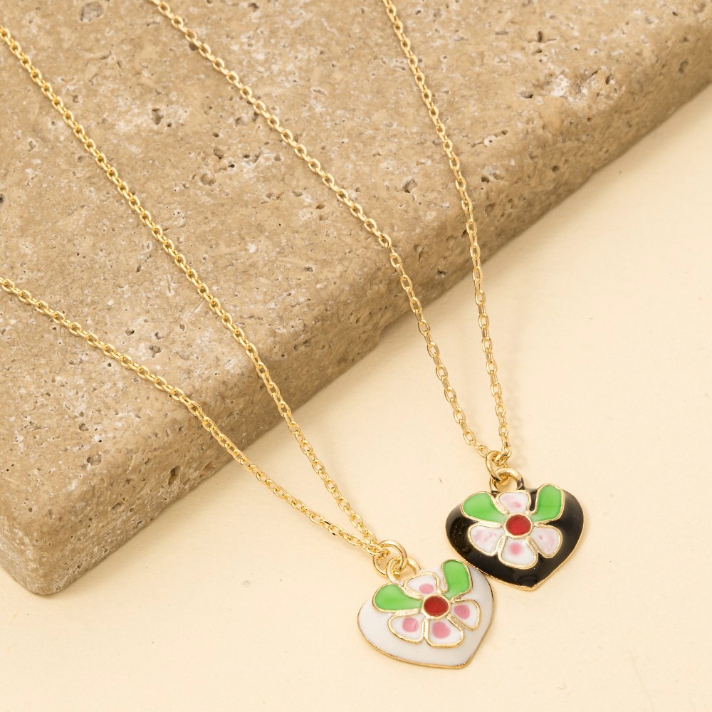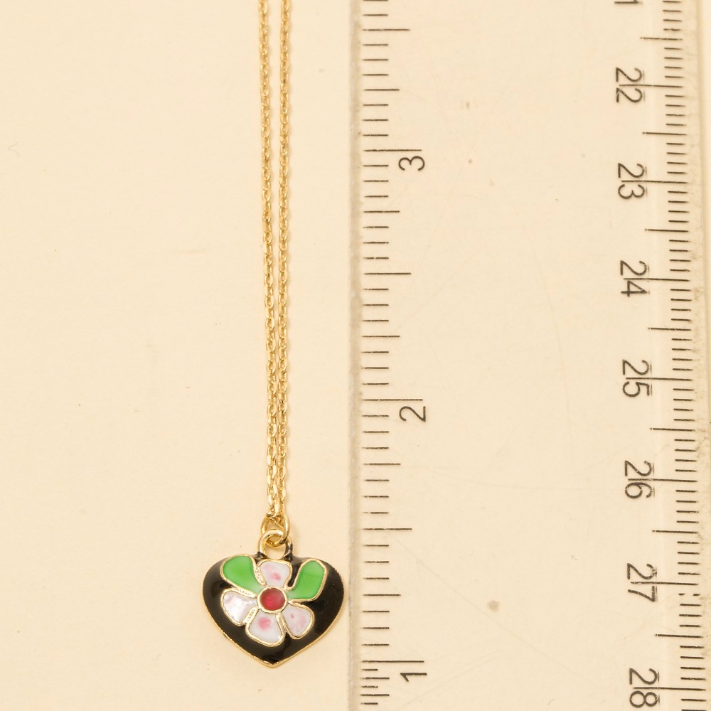 • Unleash your inner fashionista, this necklace presents a striking enamel flower heart pendant design. Perfect for adding some personality and flair to your wardrobe, this necklace is a must-have. Available in GDBLK, GDWHT. This item is sold in packs of 1.