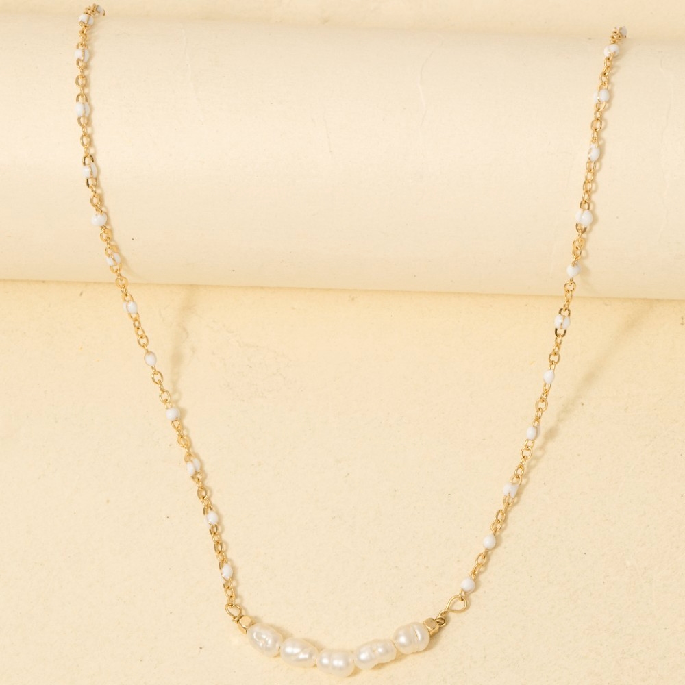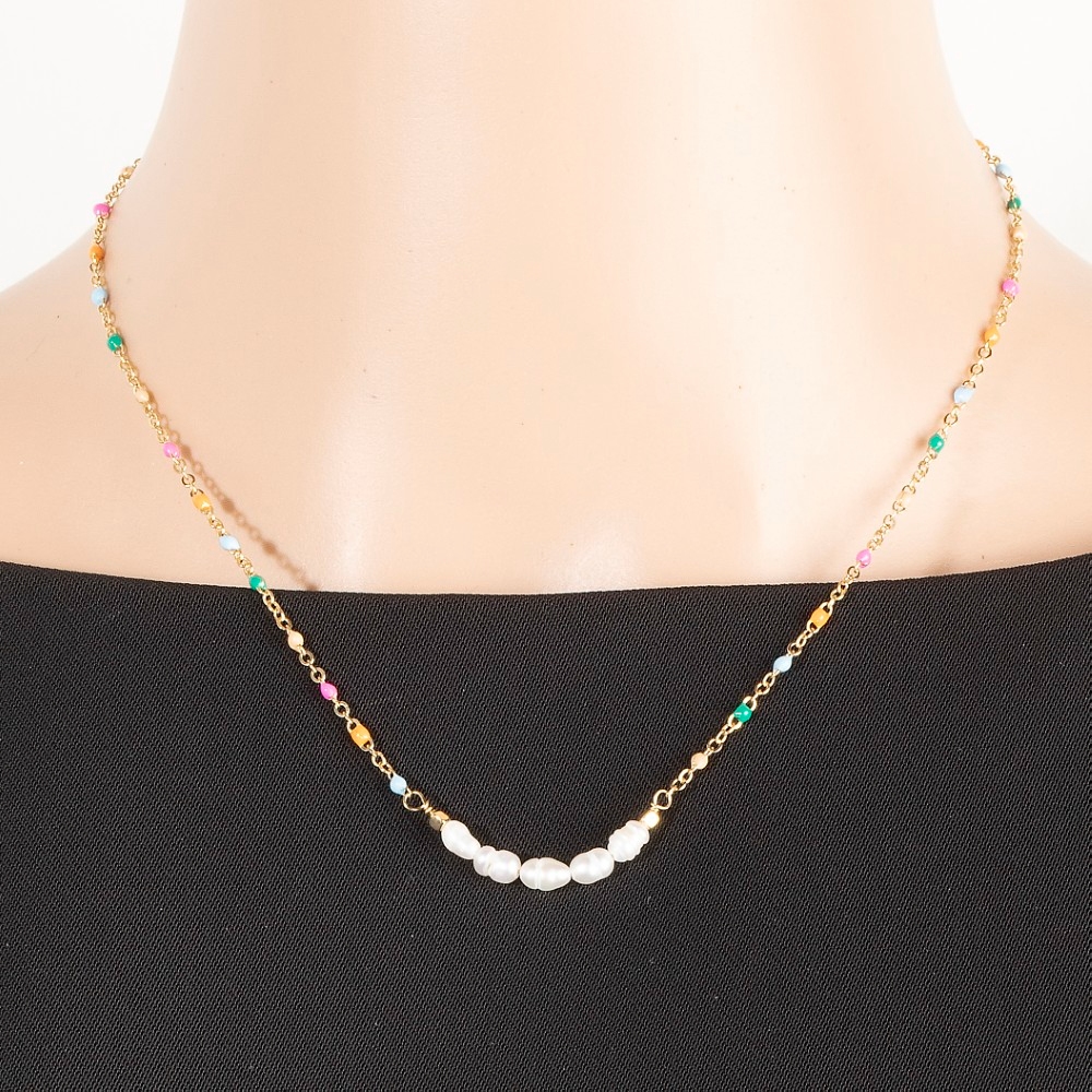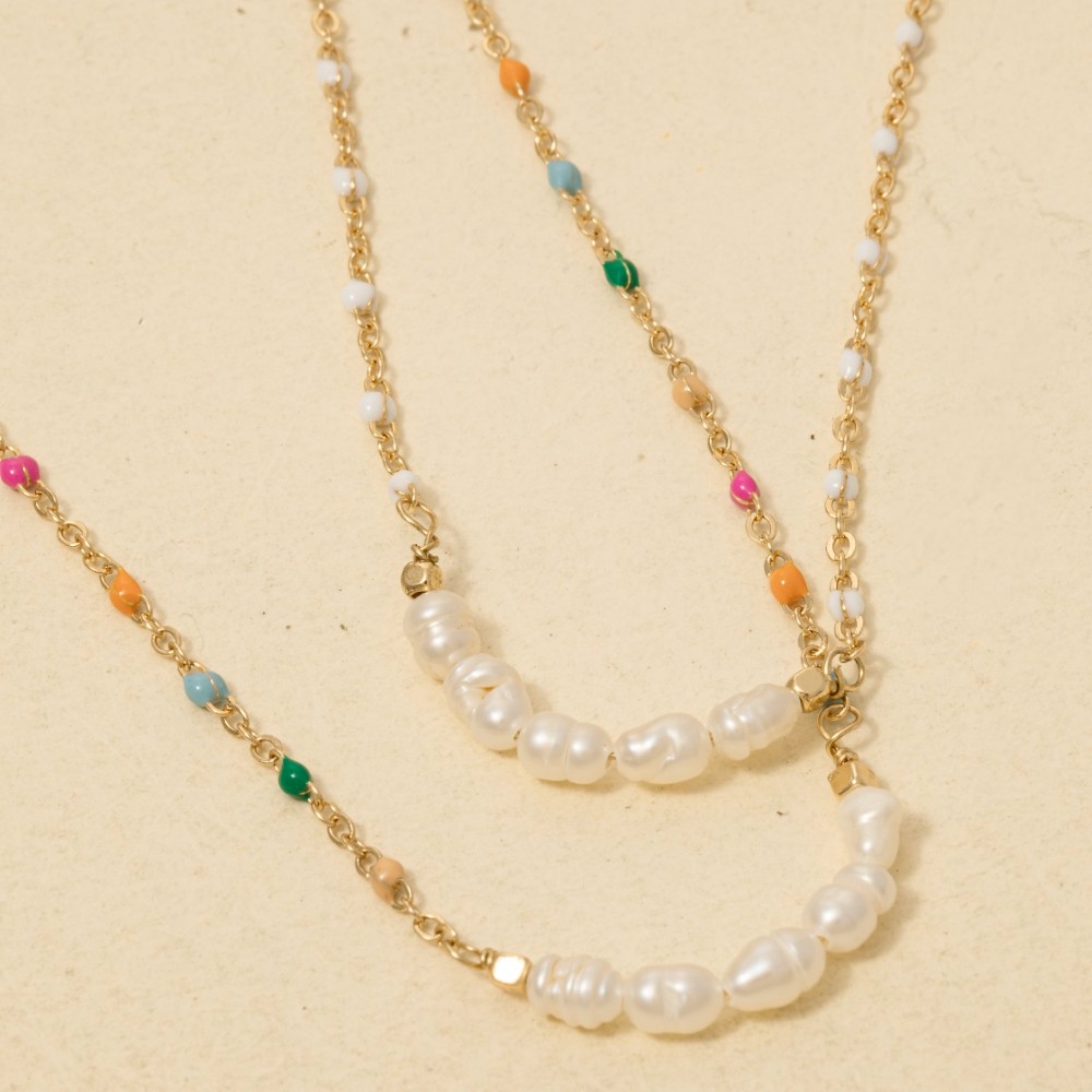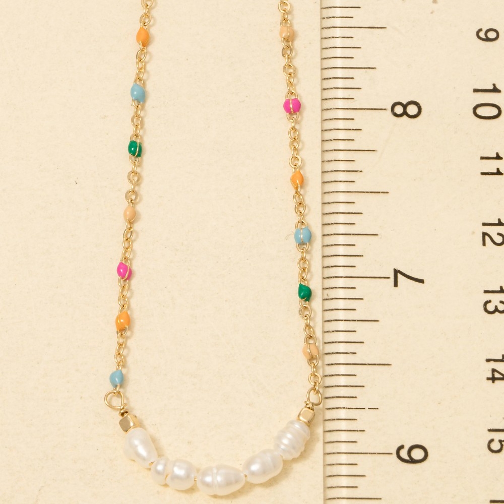 Upgrade your chain necklace game, this chain necklace encompasses a grand enamel and pearly beaded row dainty design. This item is perfect for adding some color and vibrancy to any outfit. Available in GDMU, GDWH. This item is sold in packs of 1.