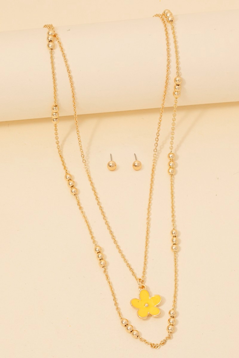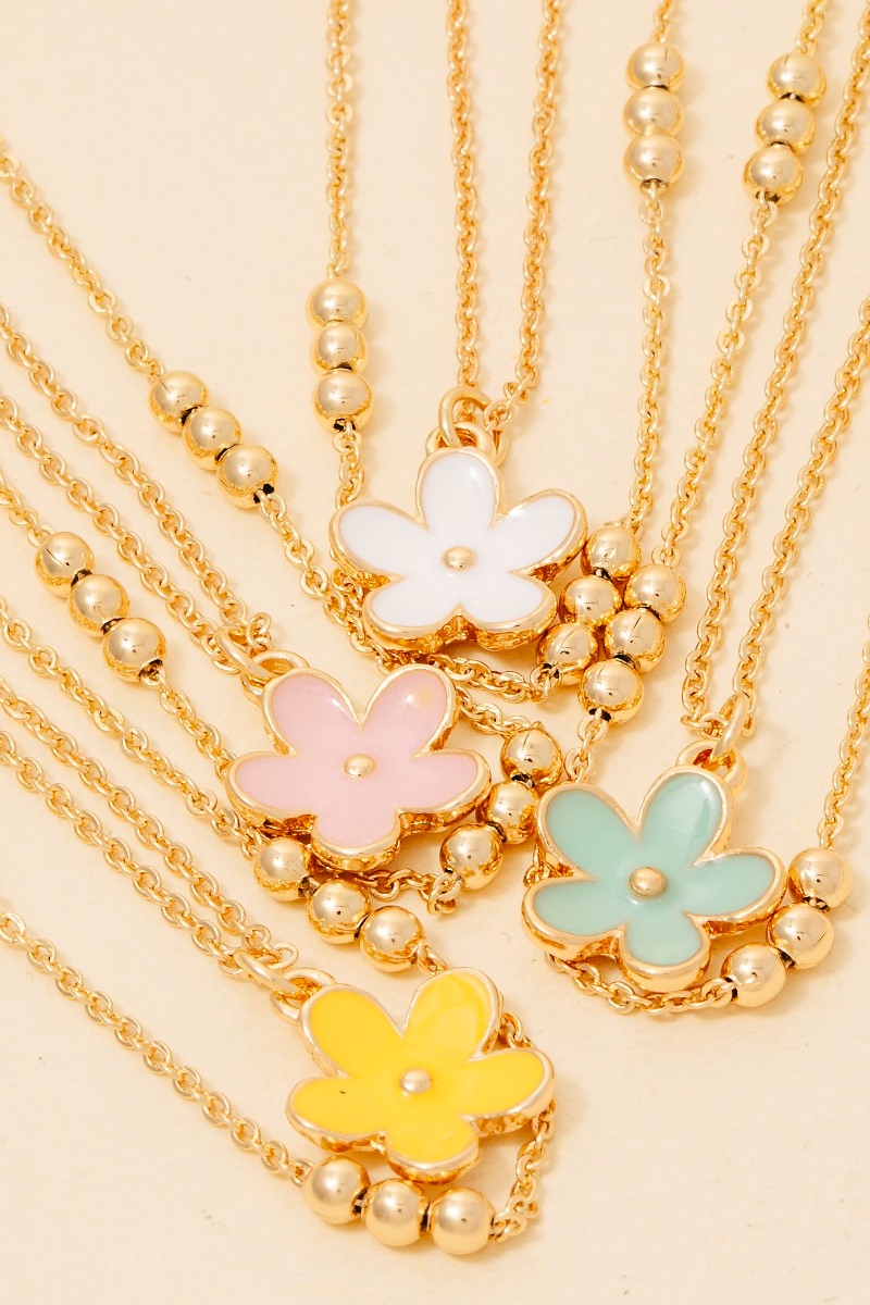 • Effortlessly chic and sophisticated, this chain necklace incorporates a flawless enamel flower pendant layered set design. Transform your outfit into a fashion masterpiece with this versatile chain necklace, an essential for the style-conscious individual. Available in BPINKGD, LMINTGD, NYELGD and WHTGD. This item is sold in packs of 1.