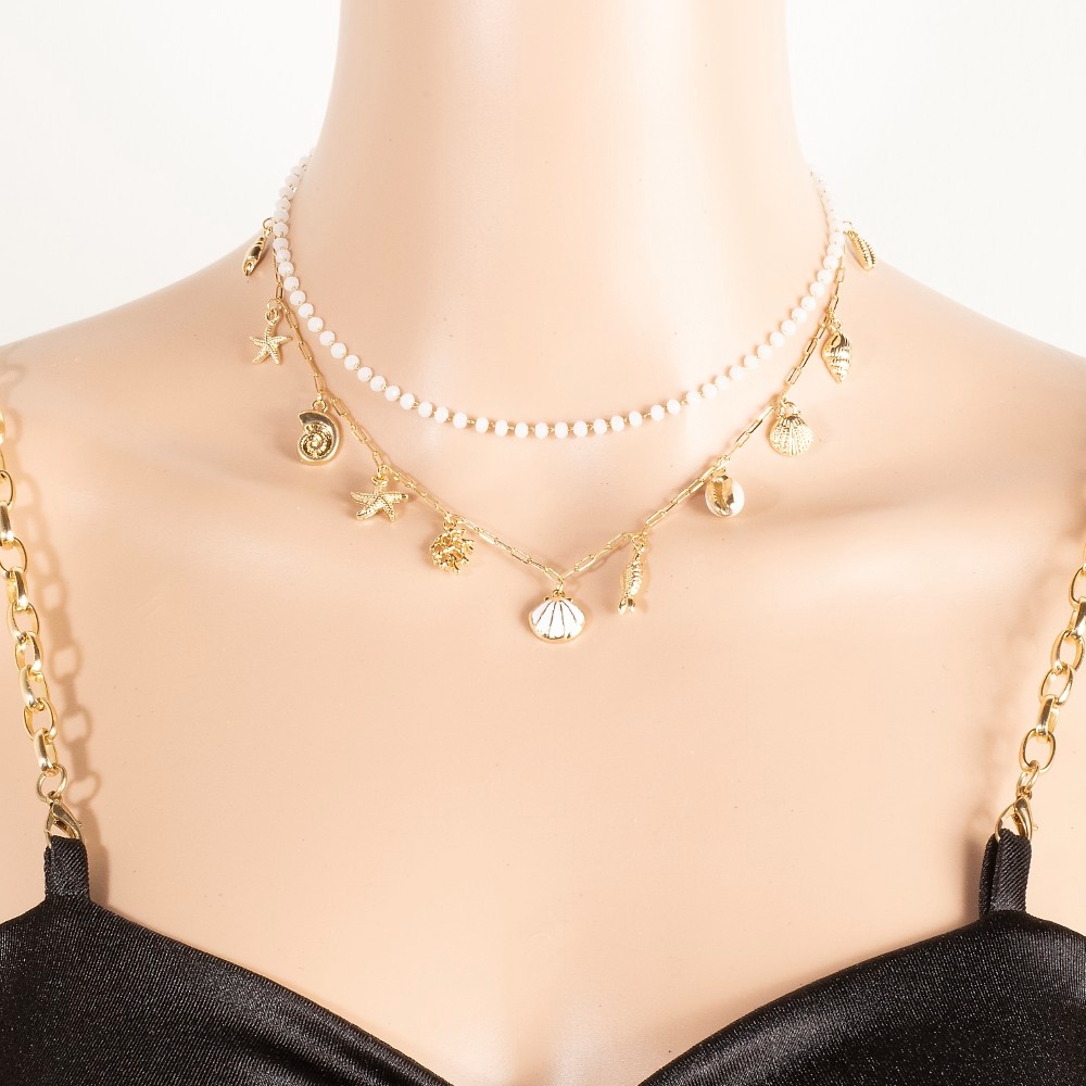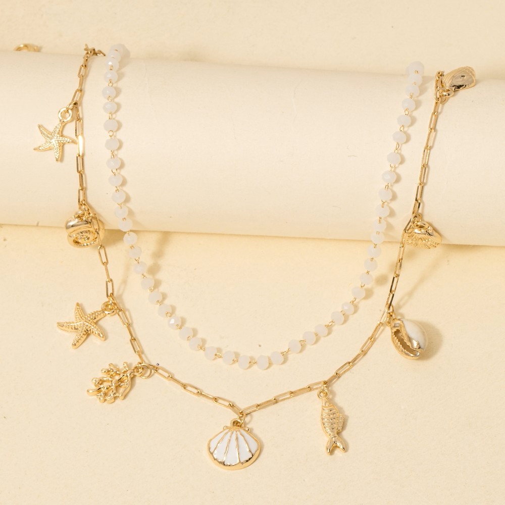 - Perfectly polished and endlessly versatile, this layered necklace reveals an intricate enamel and metallic sea life charms design. Elevate your fashion game with this versatile layered necklace, seamlessly integrating into your signature style. Available in GDMWH. This item is sold in packs of 1.