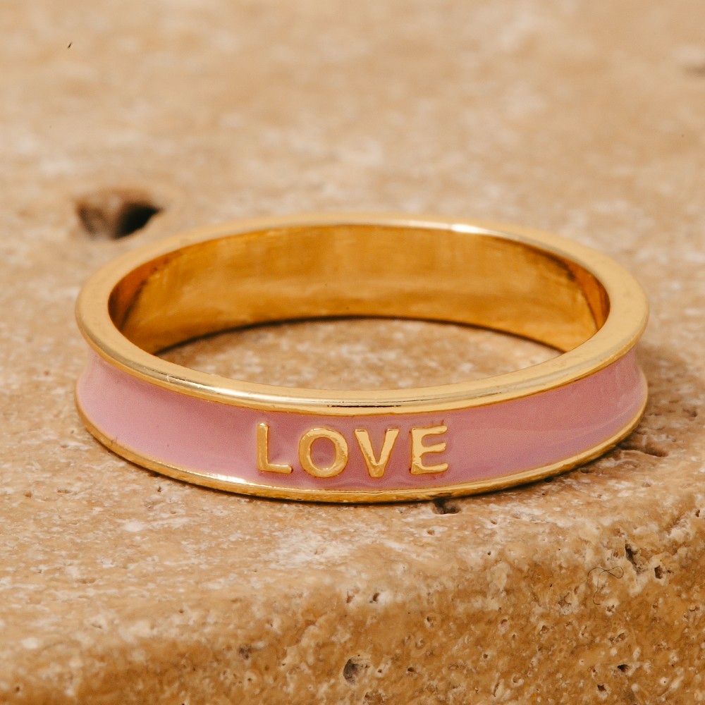 • This piece is a true showstopper, this ring showcases a breathtaking enamel love band design. Perfect for adding a pop of color or texture to any outfit, this ring is a must-have. Available in TQ. This item is sold in packs of 1.
