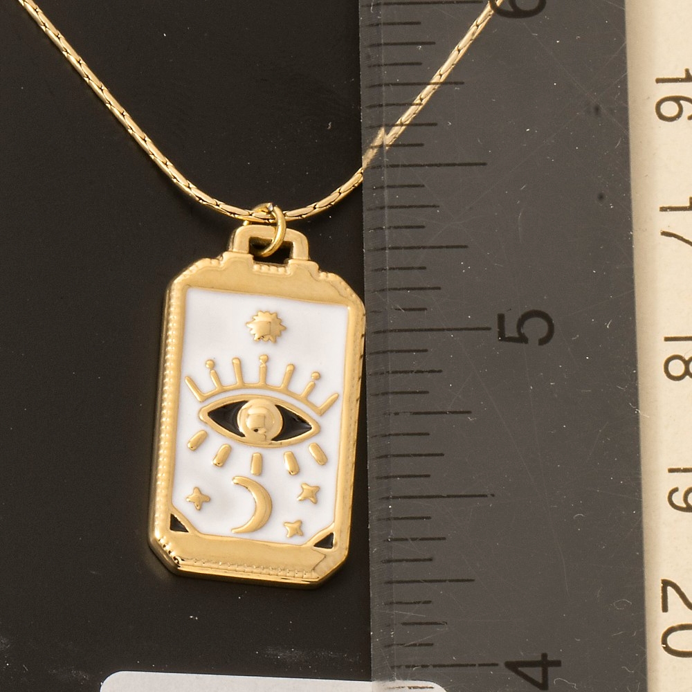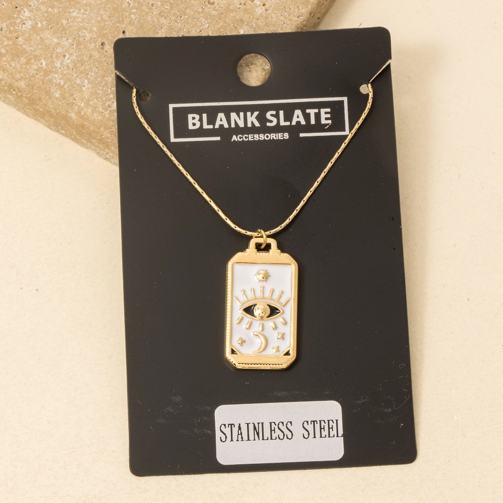 • Bold and daring, this necklace contains a special stainless steel enamel evil eye moon rectangle pendant design. This item is perfect for anyone who loves to accessorize and add some personality to their outfits. Available in G. This item is sold in packs of 1.