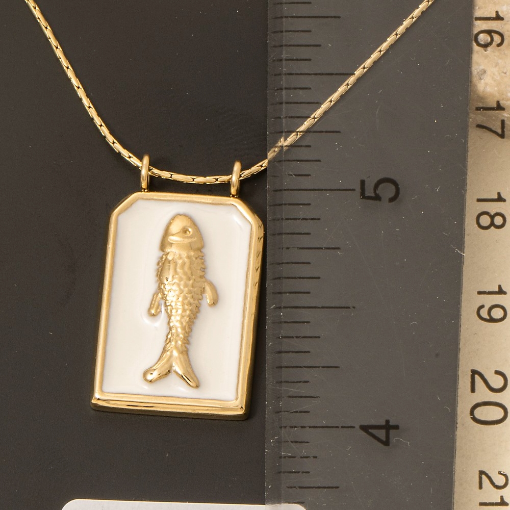 • A stunning addition to any jewelry collection, this necklace evokes a captivating stainless steel enamel fish pendant design. A stylish necklace that's perfect for complementing your favorite outfit. Available in G. This item is sold in packs of 1.