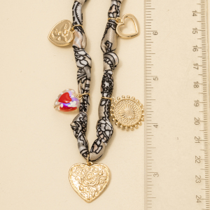 Intricate Enamel And Metallic Heart Charms Statement Necklace