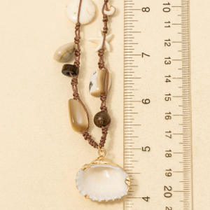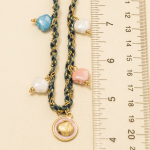 Stainless Steel Clam Shell Coin And Epoxy Charms Braided Necklace