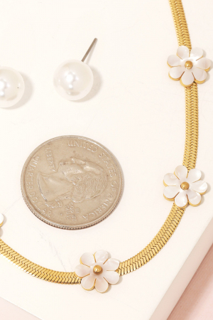 Stainless Steel Mini Flower Charms Layered Beaded Bracelet Set