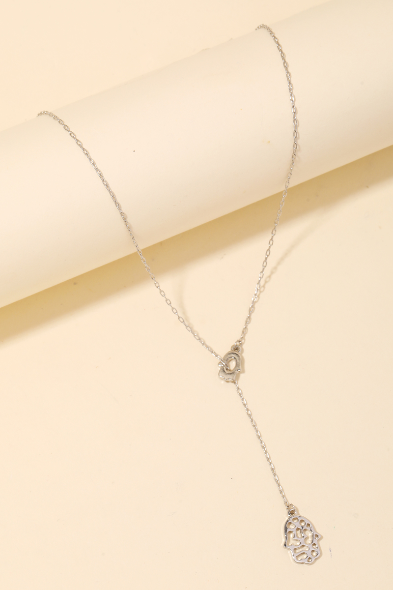 • The perfect way to elevate any outfit, this necklace encompasses a grand abstract hamsa hand charms lariat necklace design. This item is ideal for those who want to add some personality to their wardrobe without being too bold. Available in G and S. This item is sold in packs of 1.