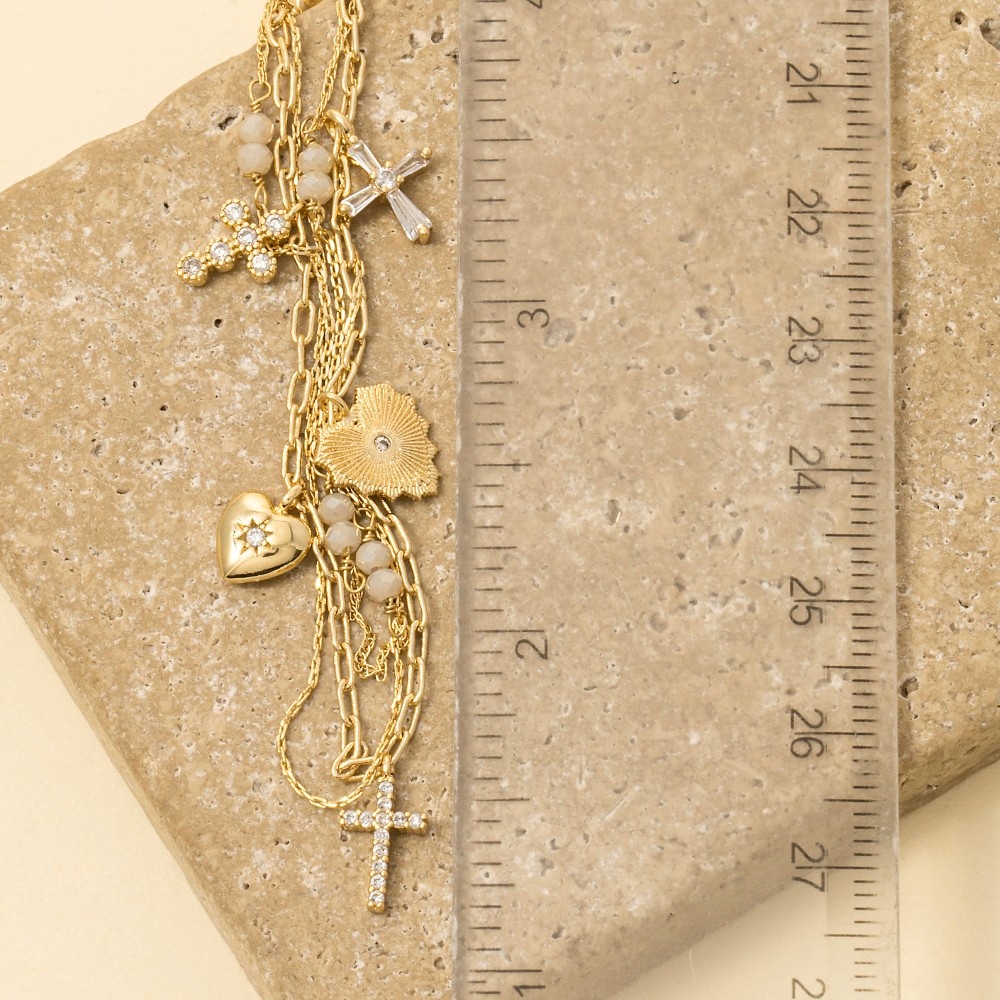 • Perfect for any occasion, this chain bracelet possesses a fine gold dipped mixed charms dainty design. Add a dash of sophistication to your look with this versatile chain bracelet, a must-have for fashion enthusiasts. Available in GOLD. This item is sold in packs of 1.