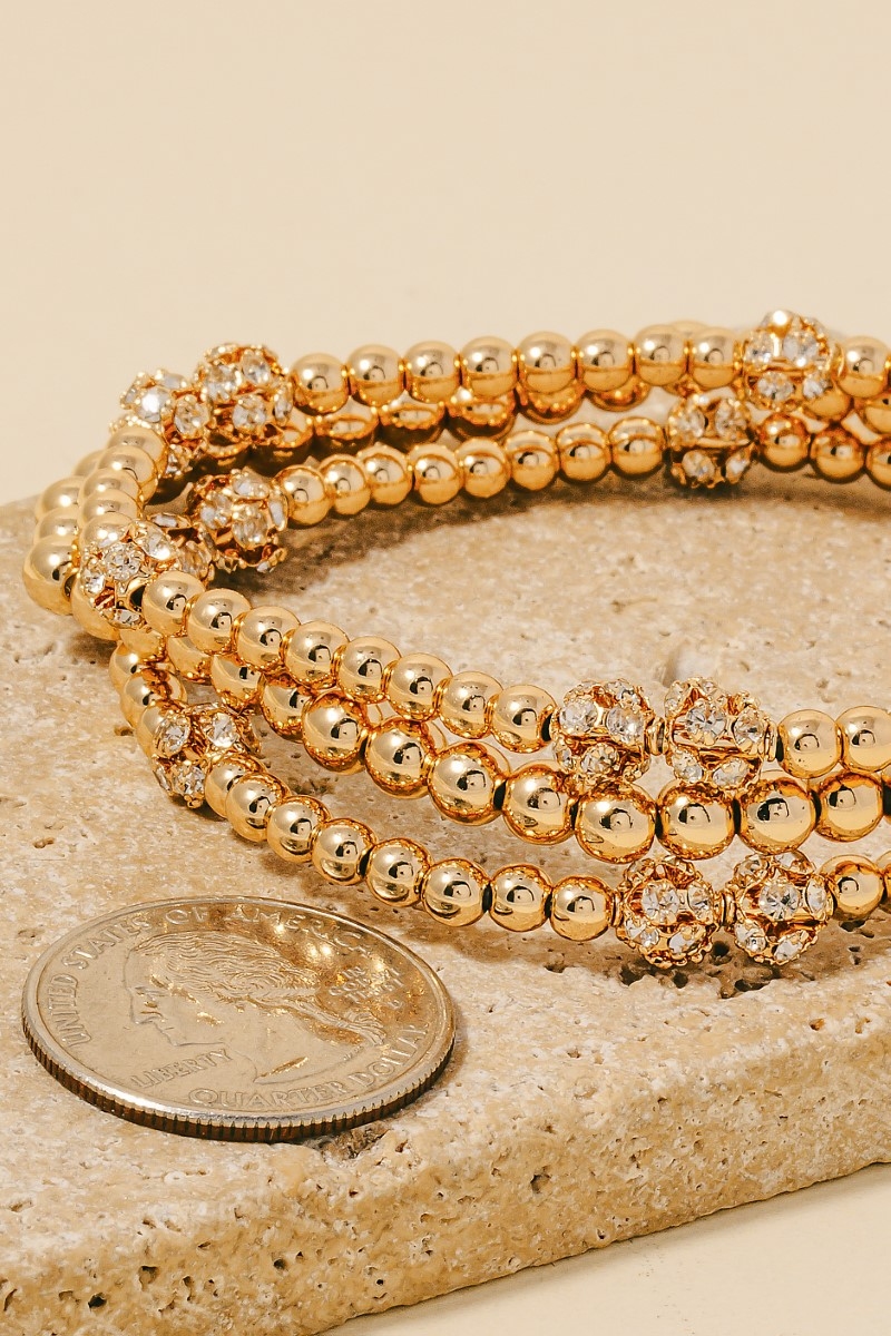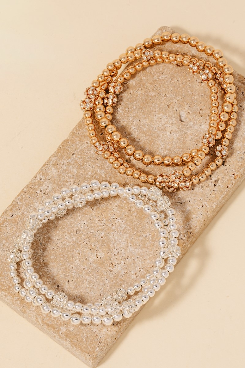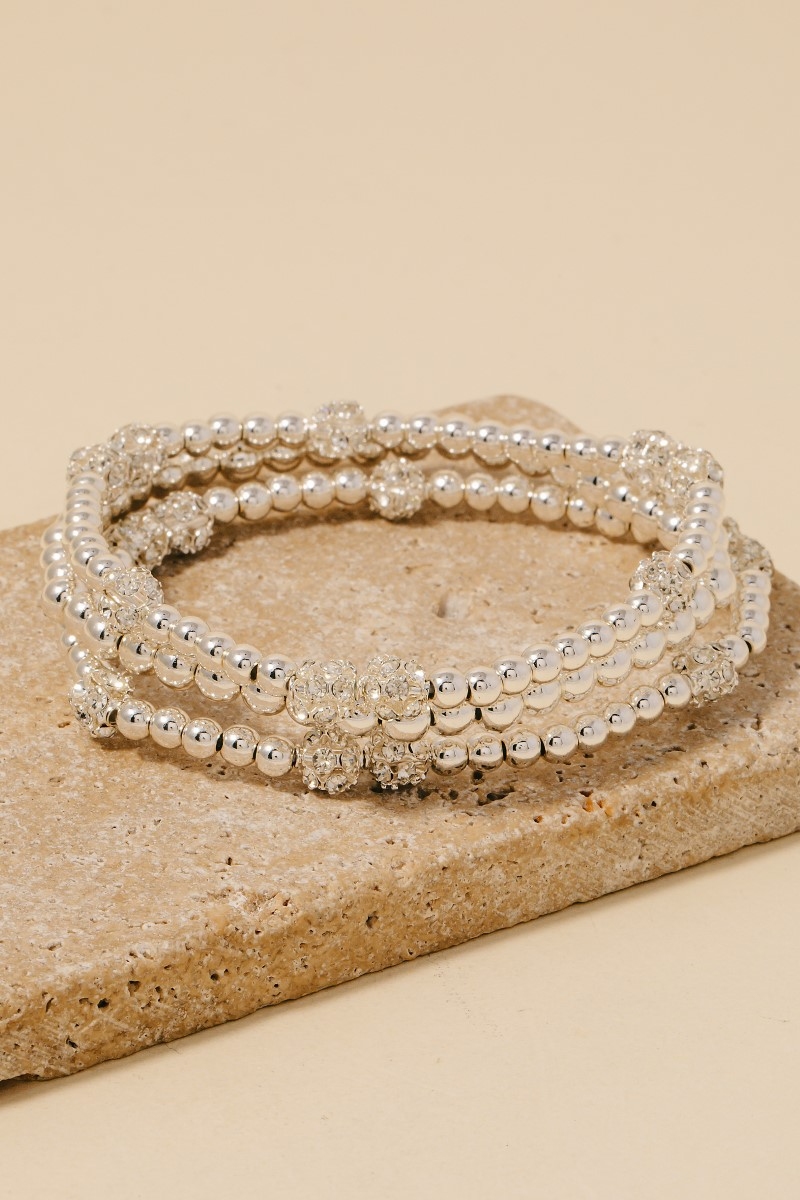 • This bracelet features a fashionable pave ball charms beaded set style. Celebrate the art of accessorizing with this piece that effortlessly encapsulates modern trends.