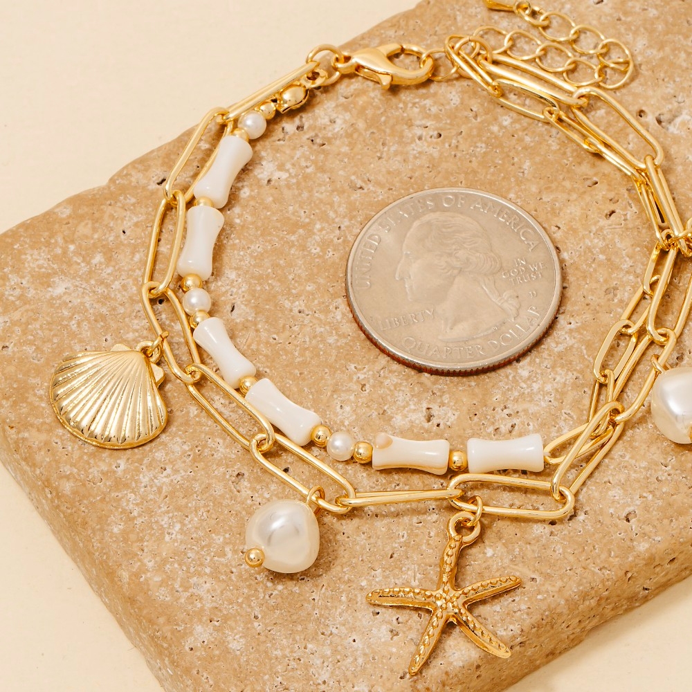 Enamel And Metallic Sea Life Charms Layered Bracelet