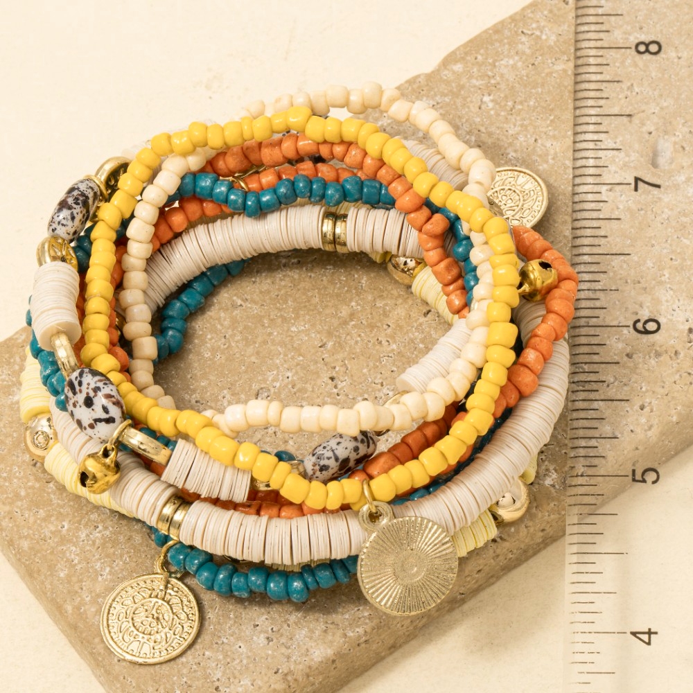• Perfect for any occasion, this bracelet brings a one-of-a-kind stone and coin charms mixed beaded set design. Elevate your everyday style with this versatile bracelet, a simple yet impactful addition to your fashion repertoire. Available in MULTI. This item is sold in packs of 1.