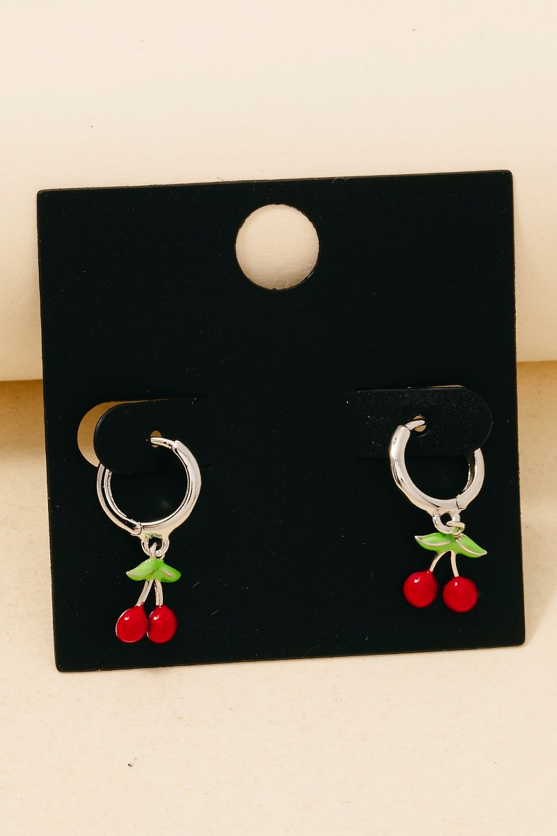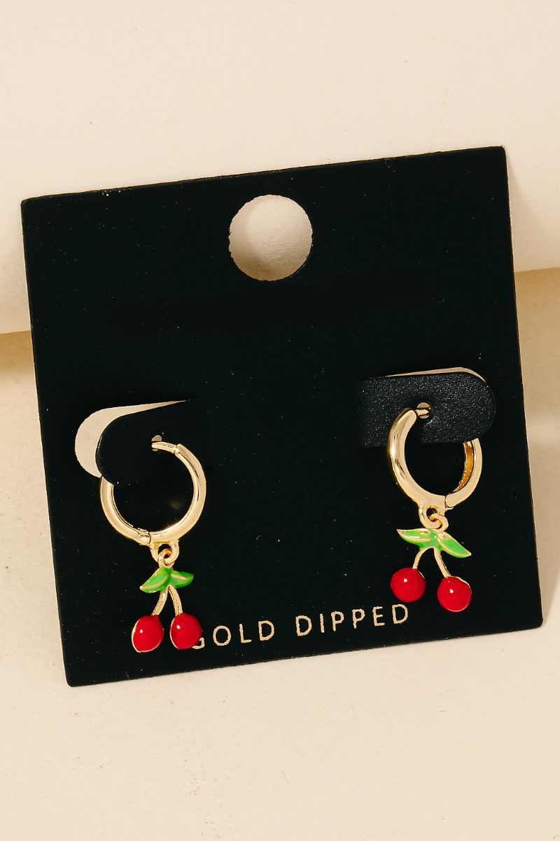 • this pair of columbus jewelry hoop earrings introduces a stunning gold dipped epoxy cherry charms style. Explore a refined sense of style with this pair of columbus jewelry hoop earrings, seamlessly elevating the chic factor of your look.