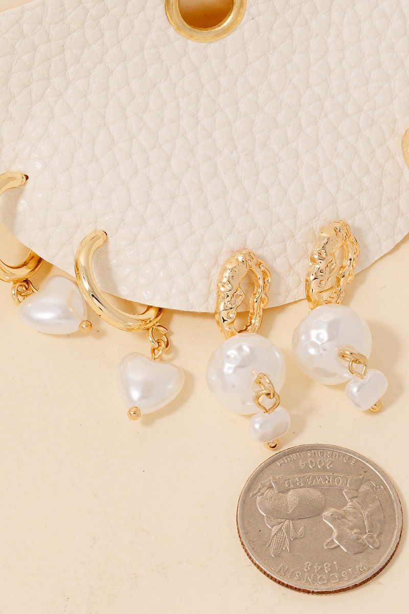 Leopard Dome Pearls And Acrylic Charms Mixed Earrings Set